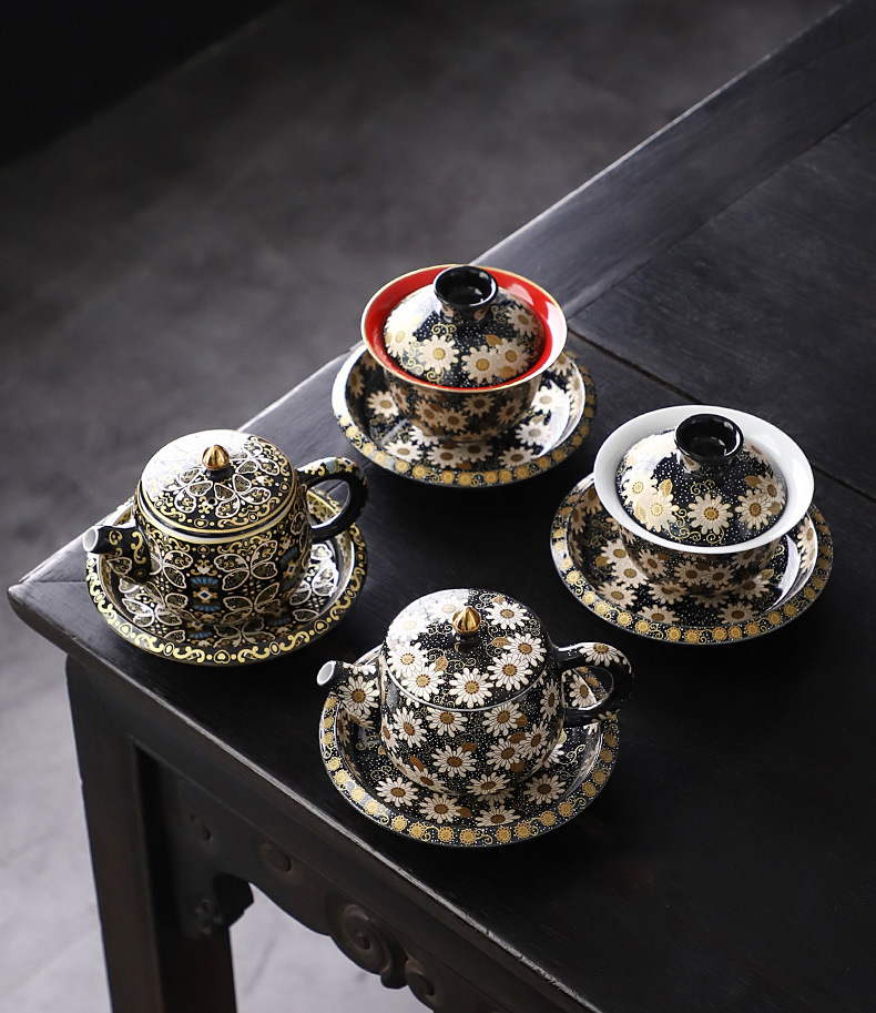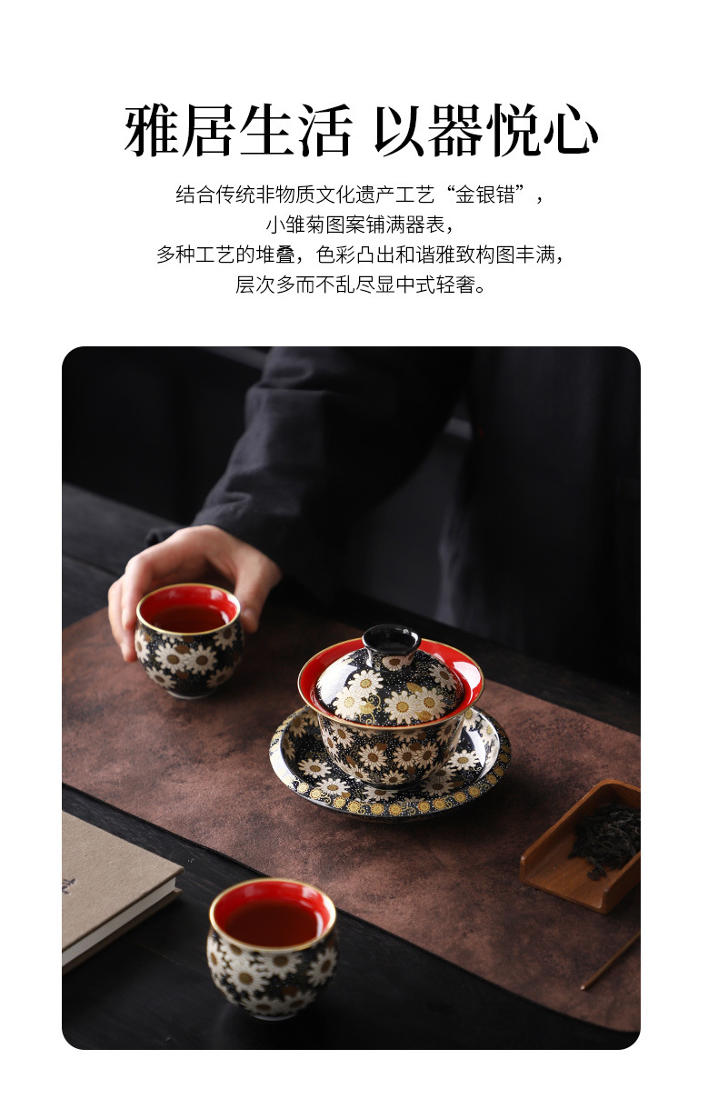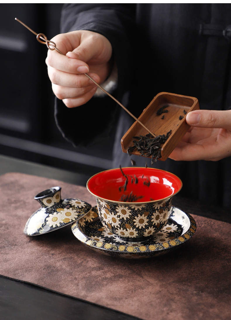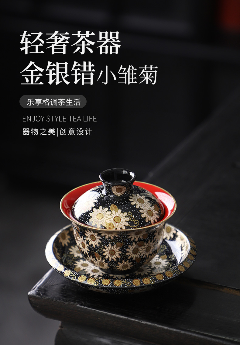 - Bộ dụng cụ trà cao cấp ba nắp Jingdezhen Bộ tách trà gốm sứ tách trà bát pha trà có nắp bán buôn tinh tế