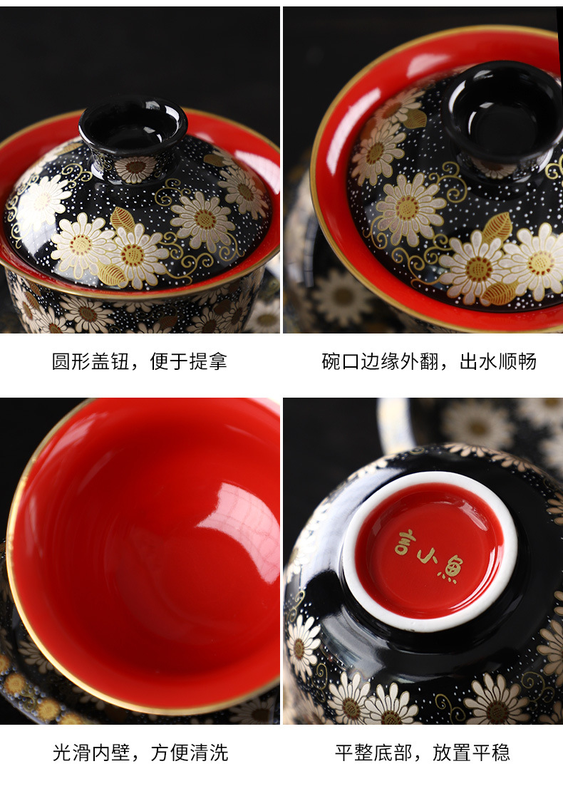 Bộ dụng cụ trà cao cấp ba nắp Jingdezhen Bộ tách trà gốm sứ tách trà bát pha trà có nắp bán buôn tinh tế