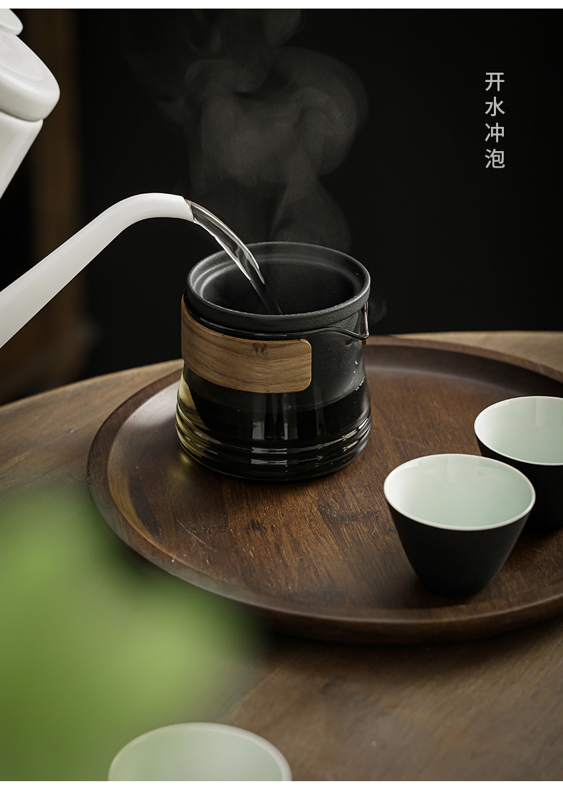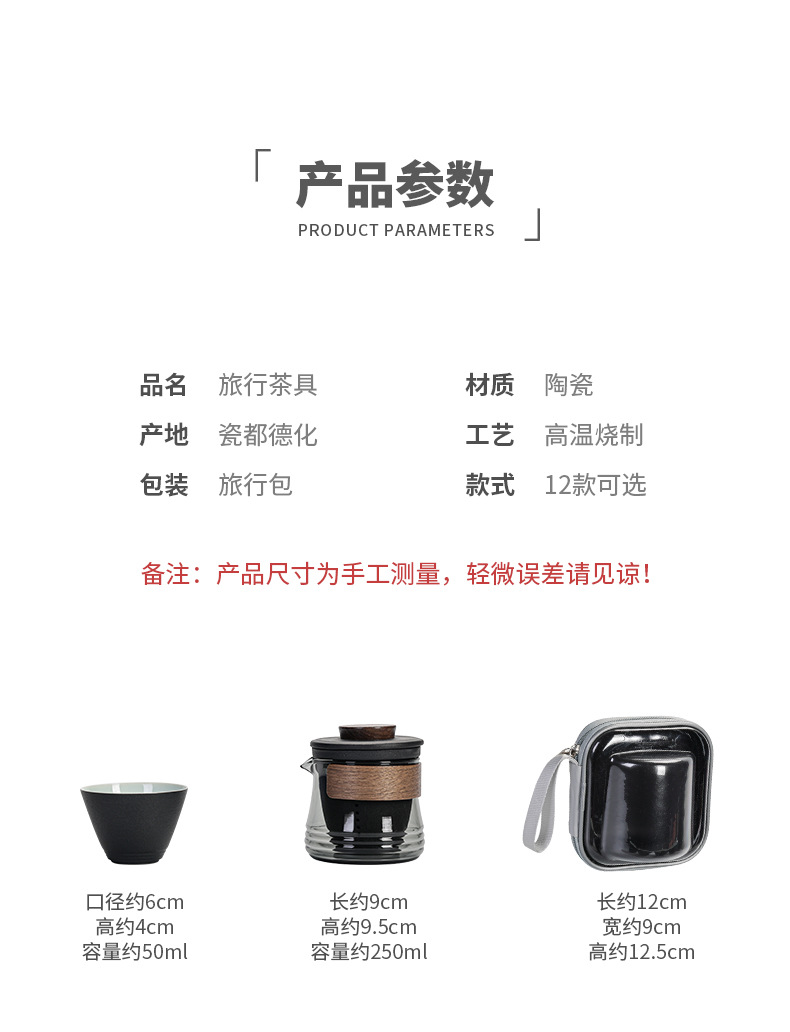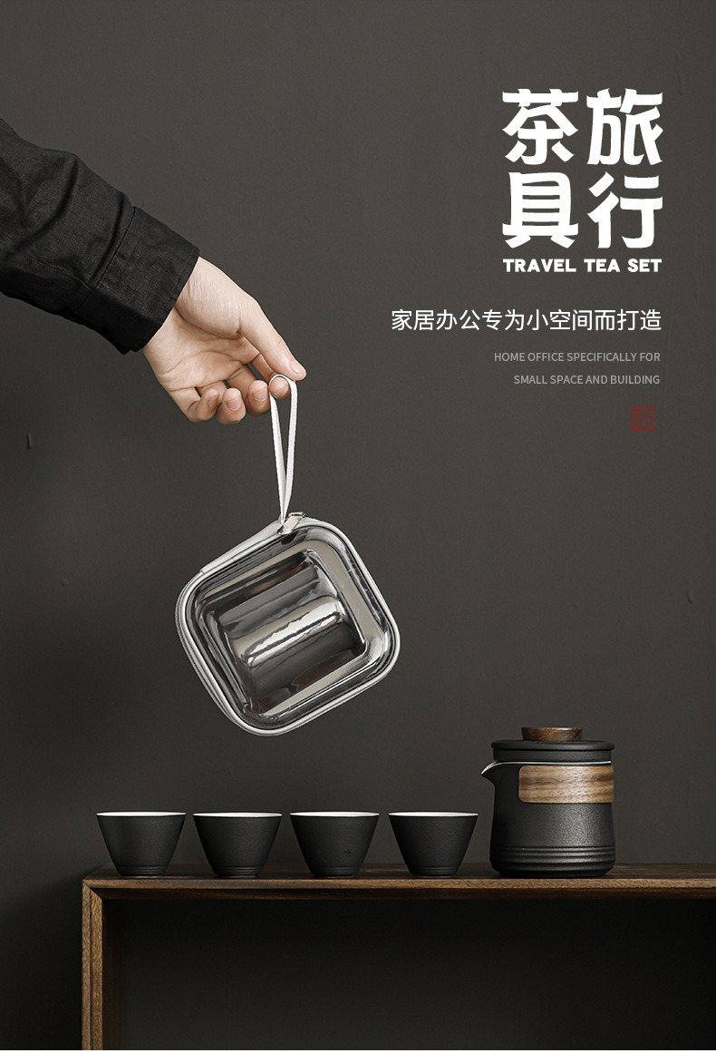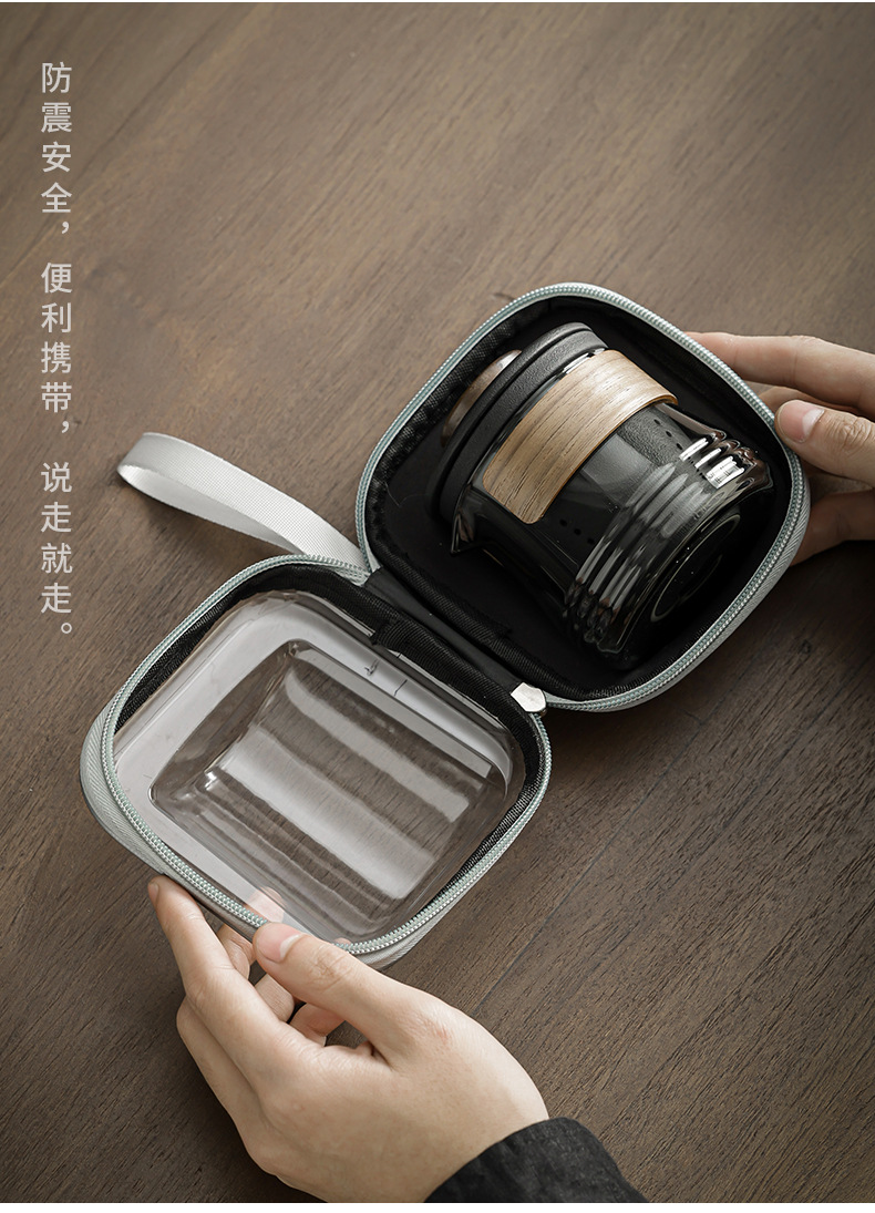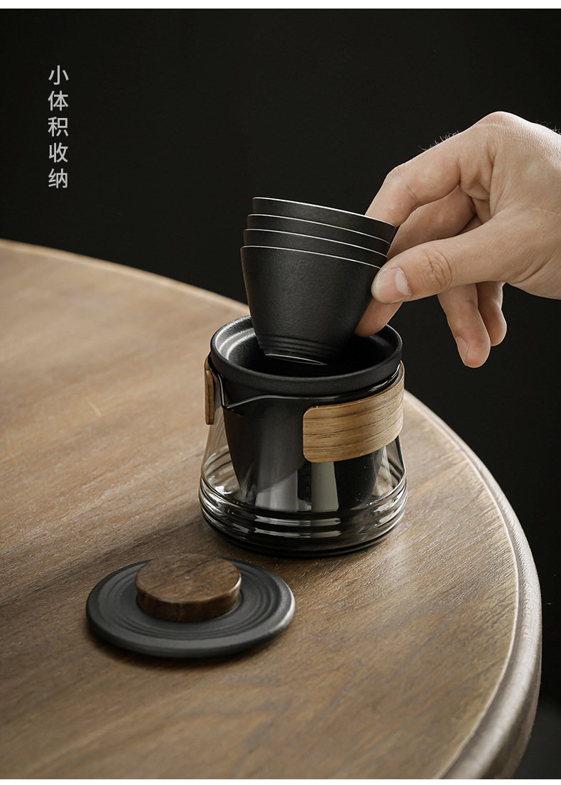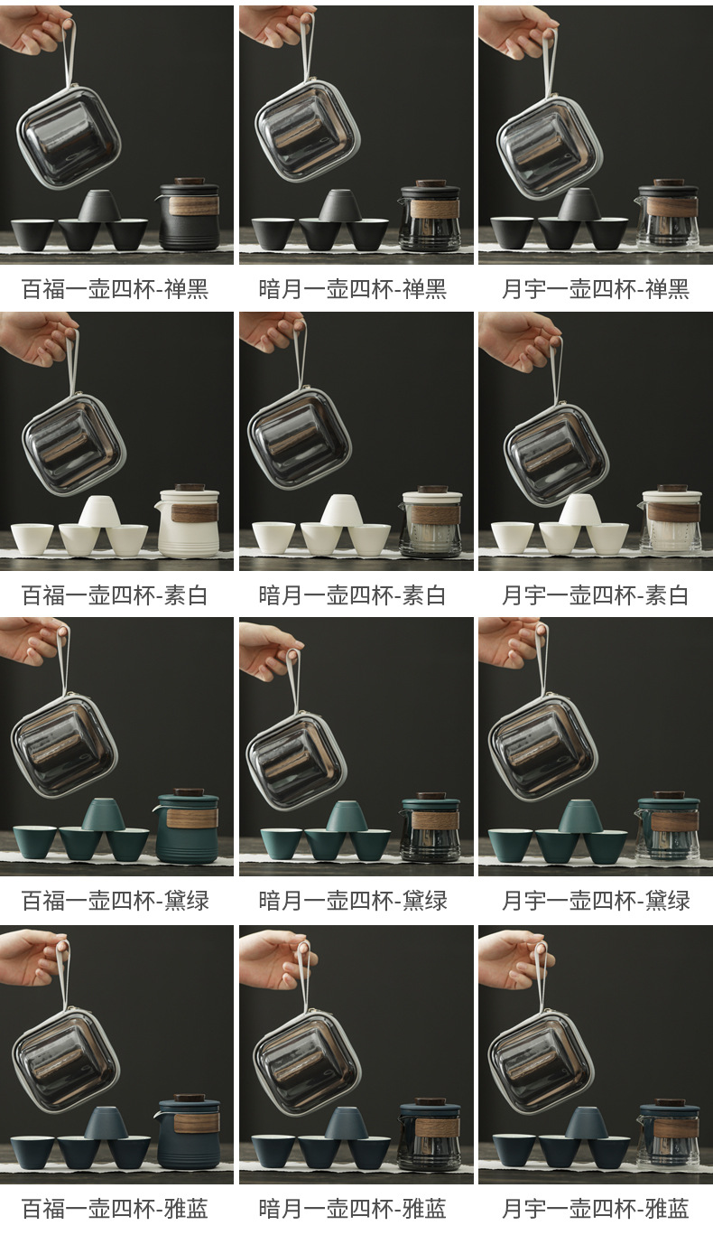 - Bộ dụng cụ trà Kung Fu du lịch cầm tay bằng thủy tinh một bình gốm ngoài trời bốn cốc