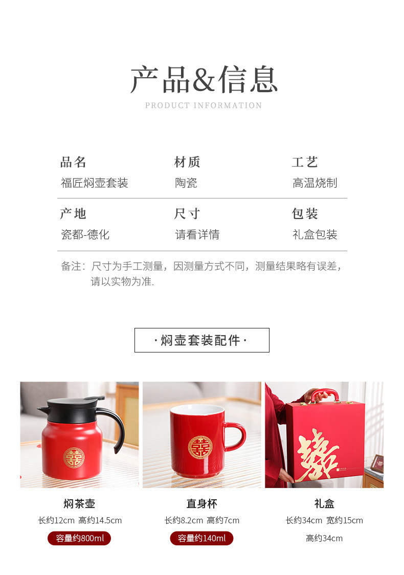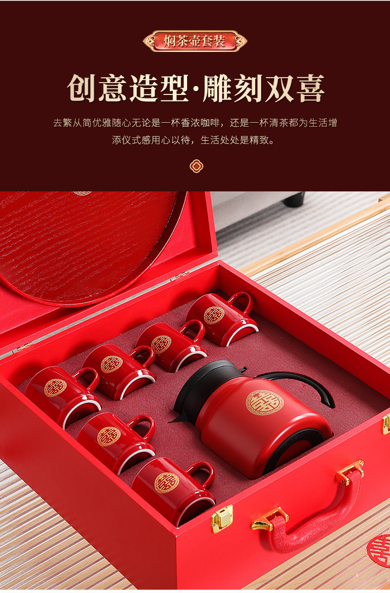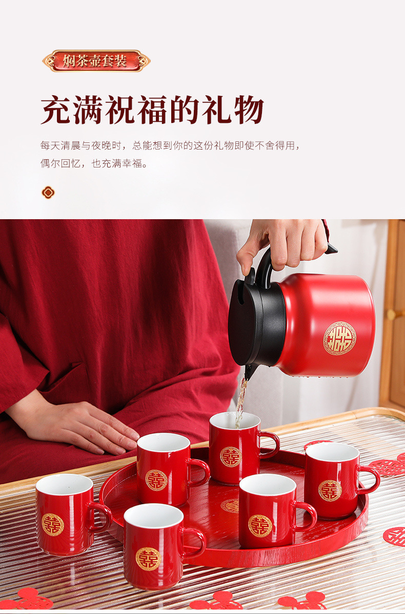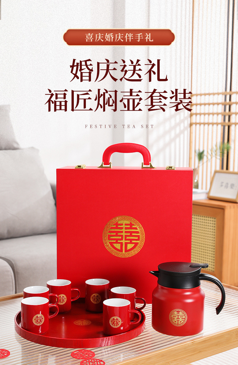 - Bộ dụng cụ trà quà cưới Đóng gói đồ dùng cưới Ấm trà om gia dụng, tách trà gốm sứ, bộ trà, hộp quà