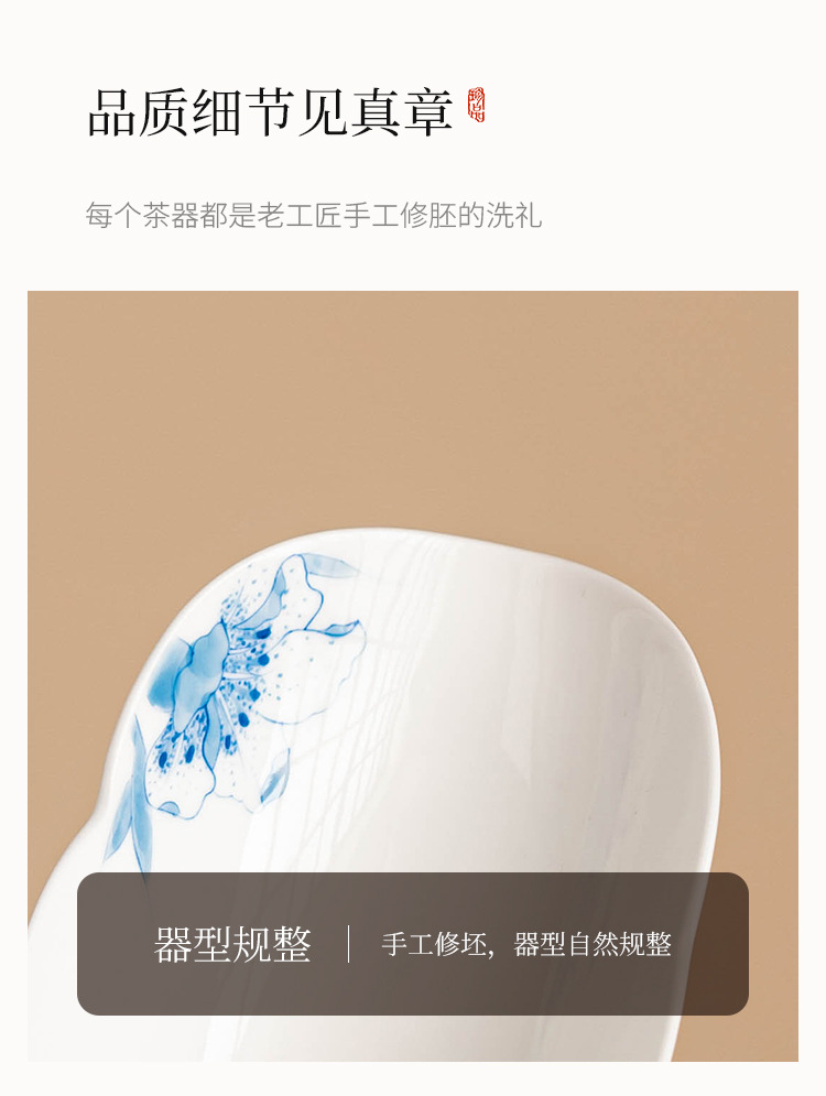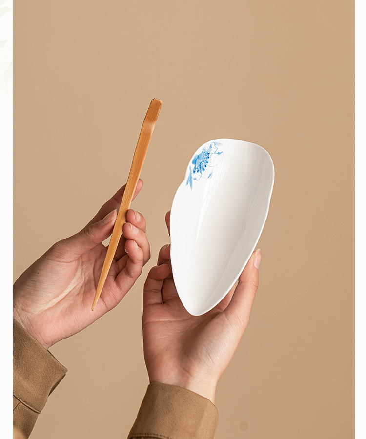 Bộ hai mảnh trà xám thực vật trà, bộ trà cuộn hoa huệ xanh vẽ tay, phụ kiện trà đạo gia dụng, trà đánh thức trà, thưởng thức trà