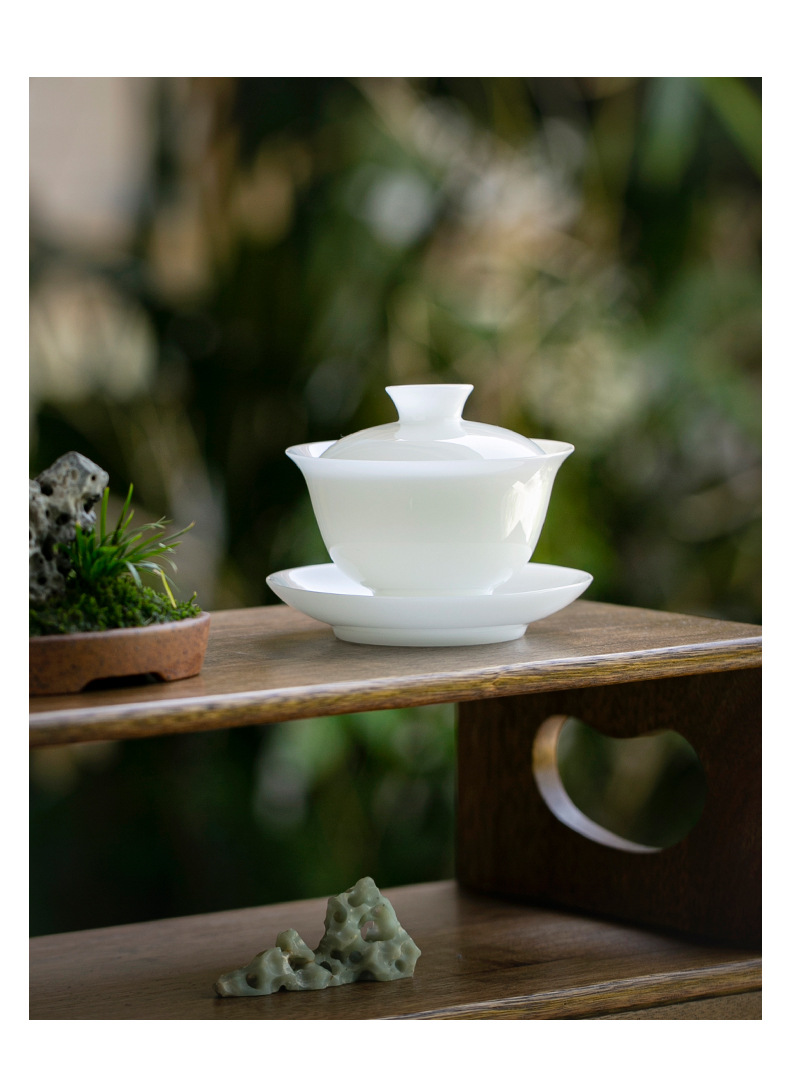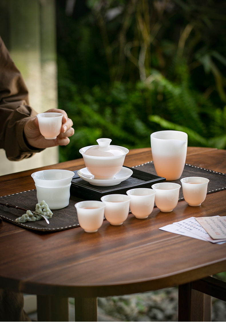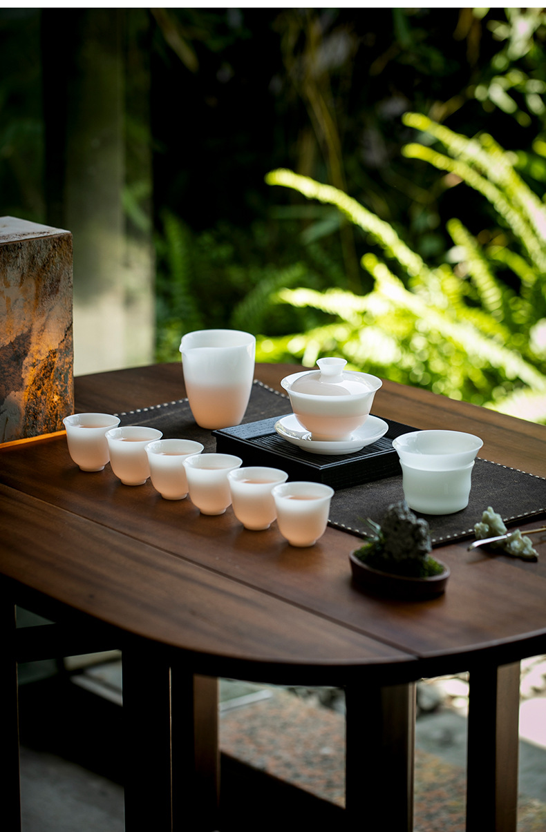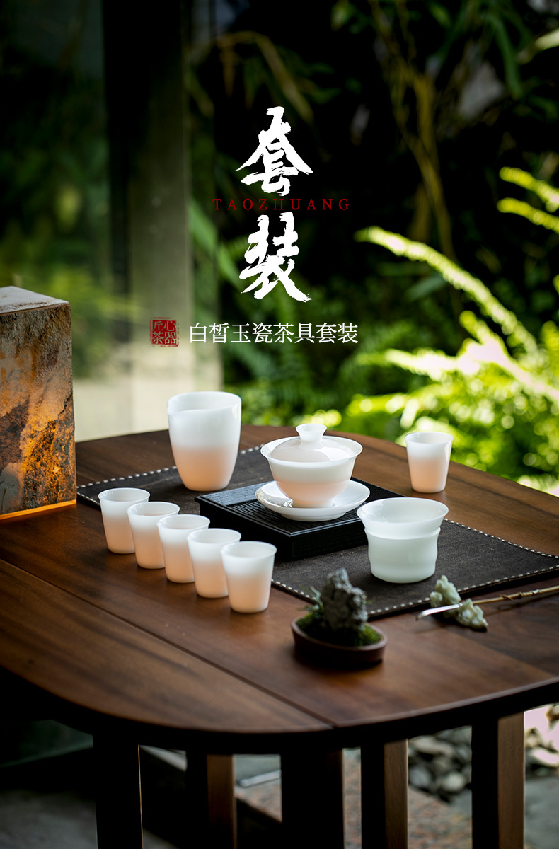 Bộ hộp quà bộ trà sứ trắng ngọc bích Bộ trà cốc có nắp sứ trắng Dehua Bộ trà tặng khách hàng