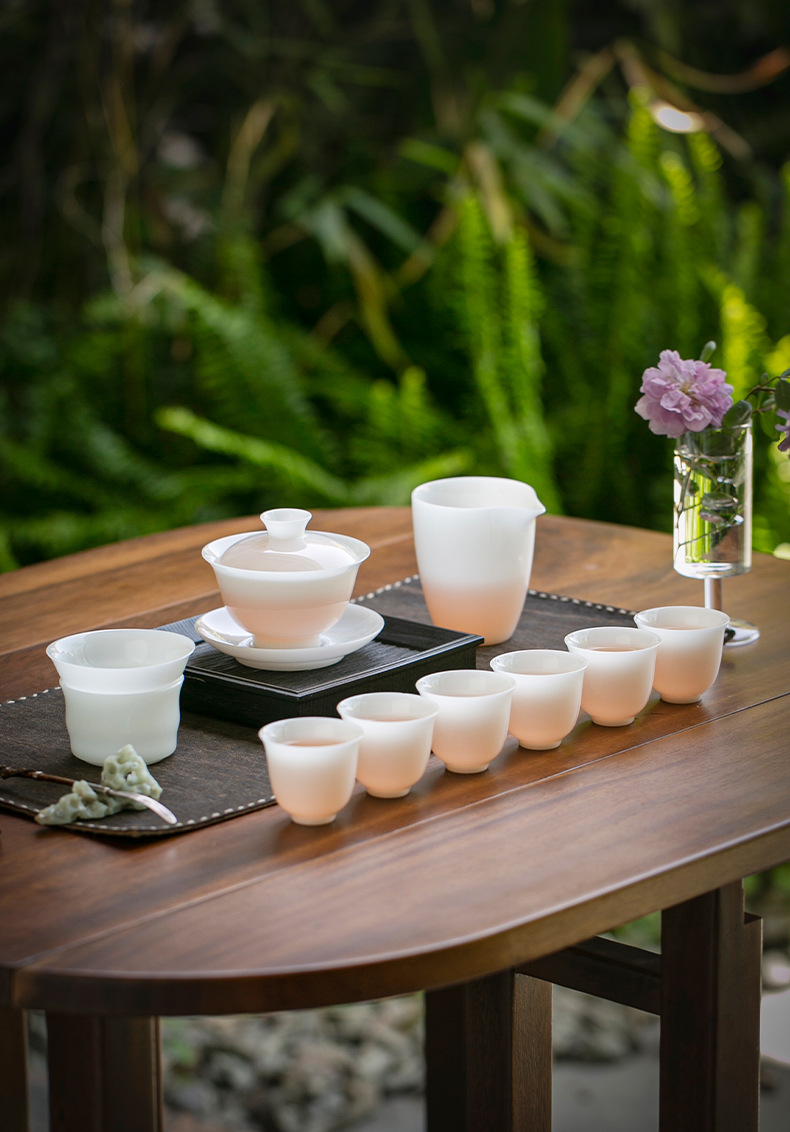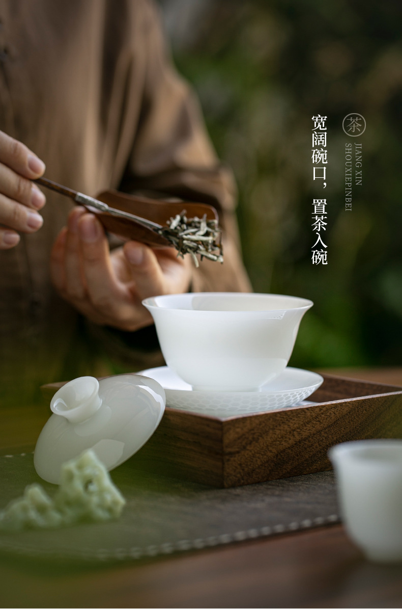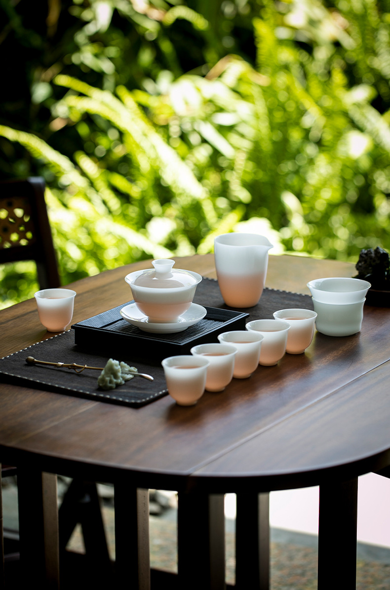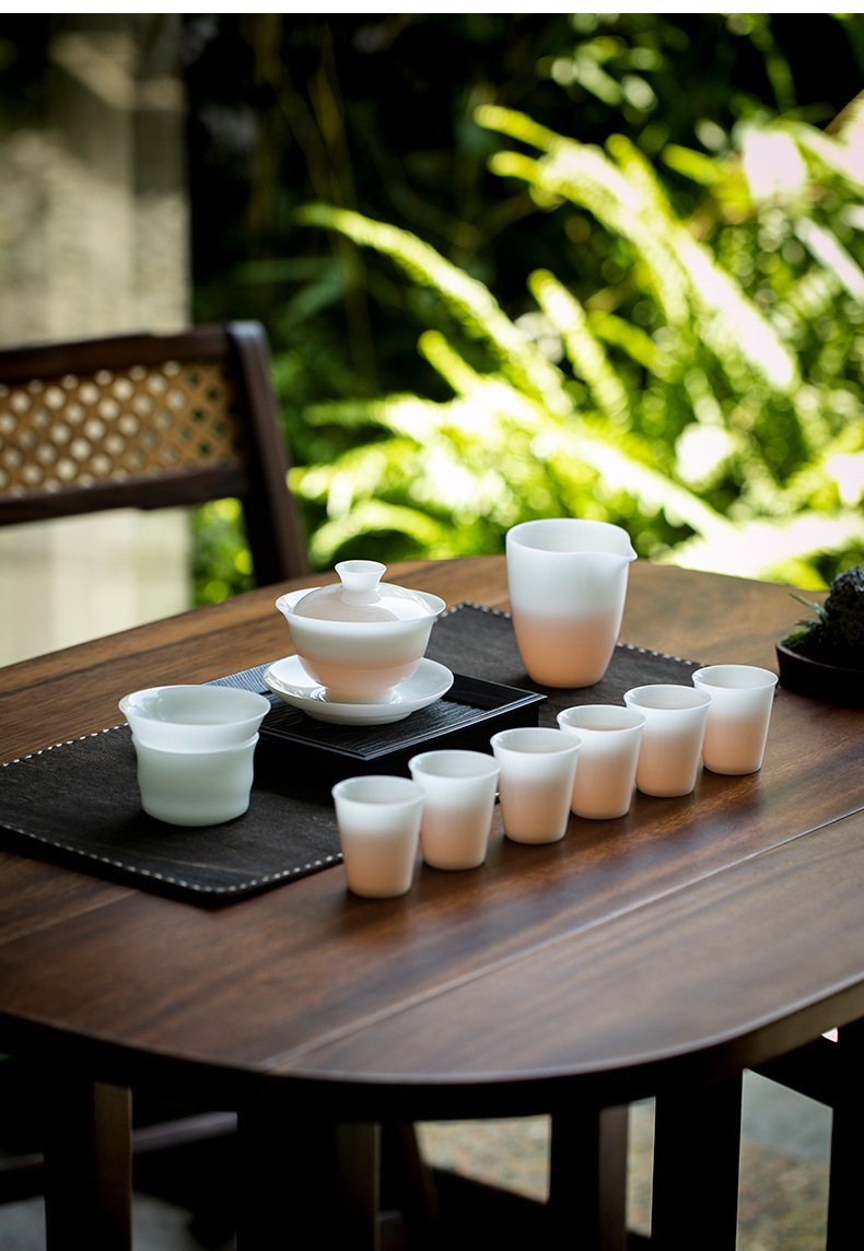 Bộ hộp quà bộ trà sứ trắng ngọc bích Bộ trà cốc có nắp sứ trắng Dehua Bộ trà tặng khách hàng