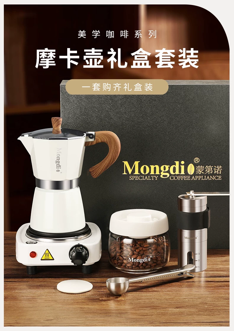 Bộ hộp quà tặng Moka pot Mongdio máy pha cà phê tại nhà máy pha cà phê espresso thủ công máy xay cầm tay