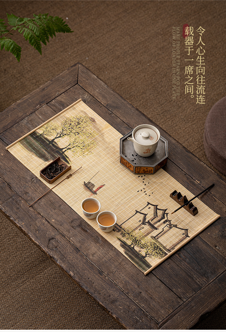 - Bộ Khăn trải bàn cách nhiệt kiểu Nhật cao cấp bằng tre đan lát khô Khăn Trải Bàn kiểu Trung Quốc mới phong cách cổ điển Thiền