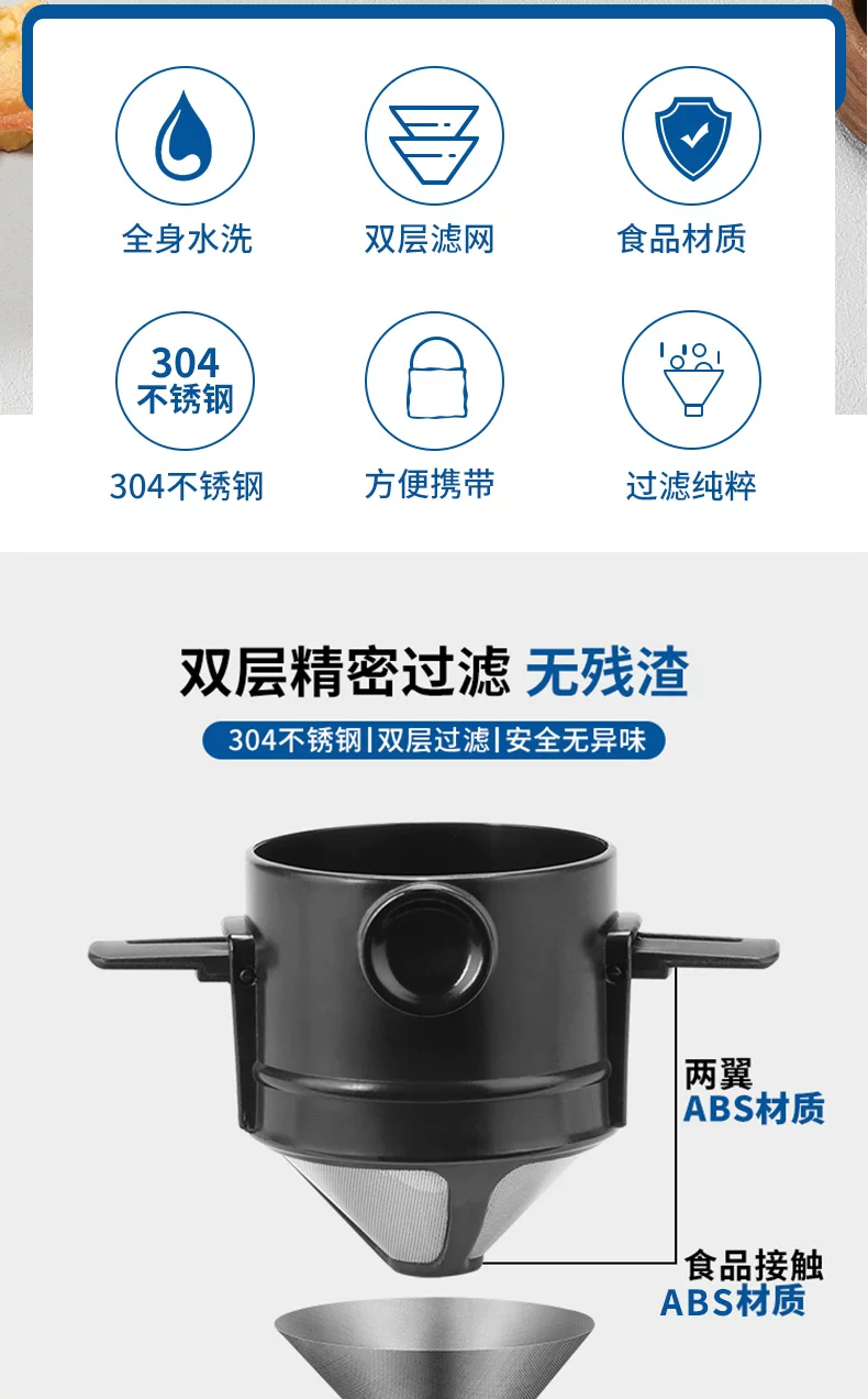 Bộ lọc cà phê bằng thép không gỉ giấy lọc cà phê di động pha cà phê bằng tay phễu lọc không cần lọc cốc lọc túi lọc