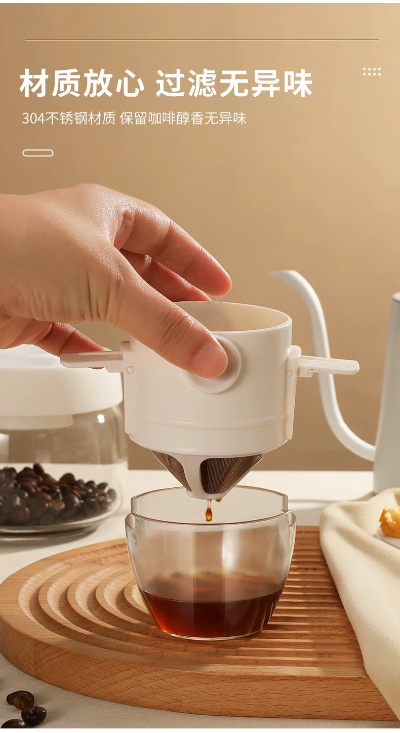 Bộ lọc cà phê Mongdio pha cà phê bằng tay cốc lọc cà phê bằng thép không gỉ di động có thể gập lại bộ lọc cà phê phễu cà phê