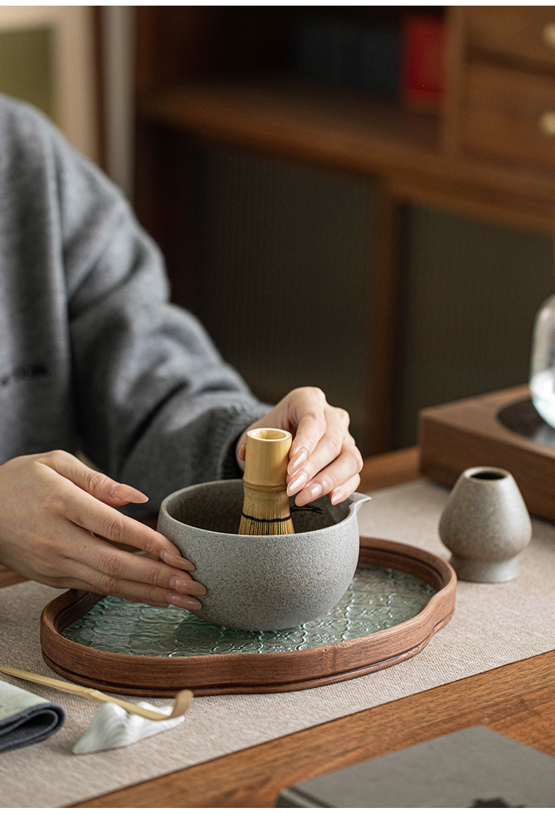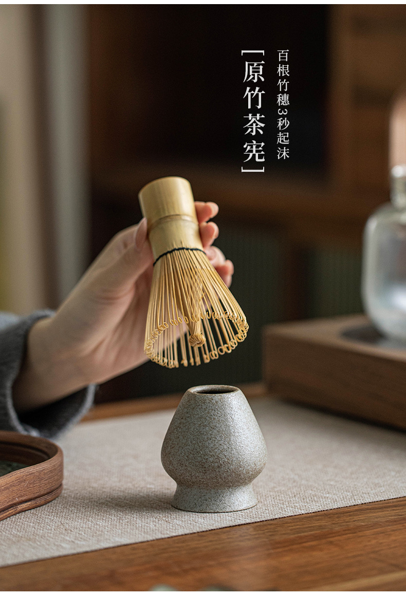 - Bộ Matcha bằng gốm thô biến đổi lò nung Dụng cụ Matcha kiểu Nhật Bình trà Bàn chải Matcha đứng Baibenli Bát Matcha Trà Baibenli