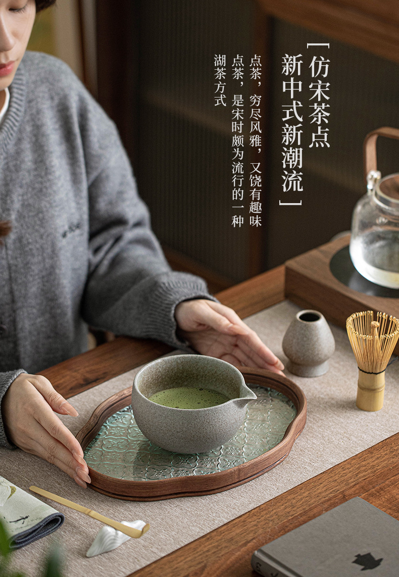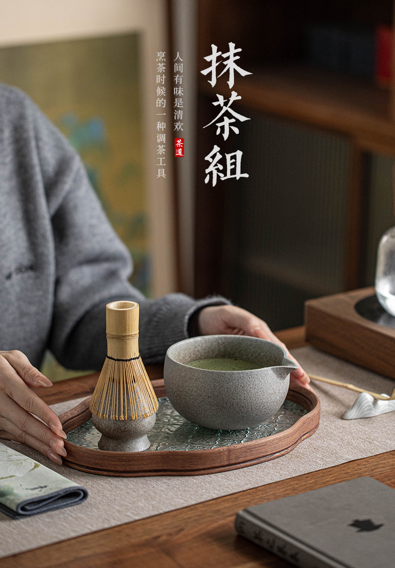 Bộ Matcha bằng gốm thô biến đổi lò nung Dụng cụ Matcha kiểu Nhật Bình trà Bàn chải Matcha đứng Baibenli Bát Matcha Trà Baibenli