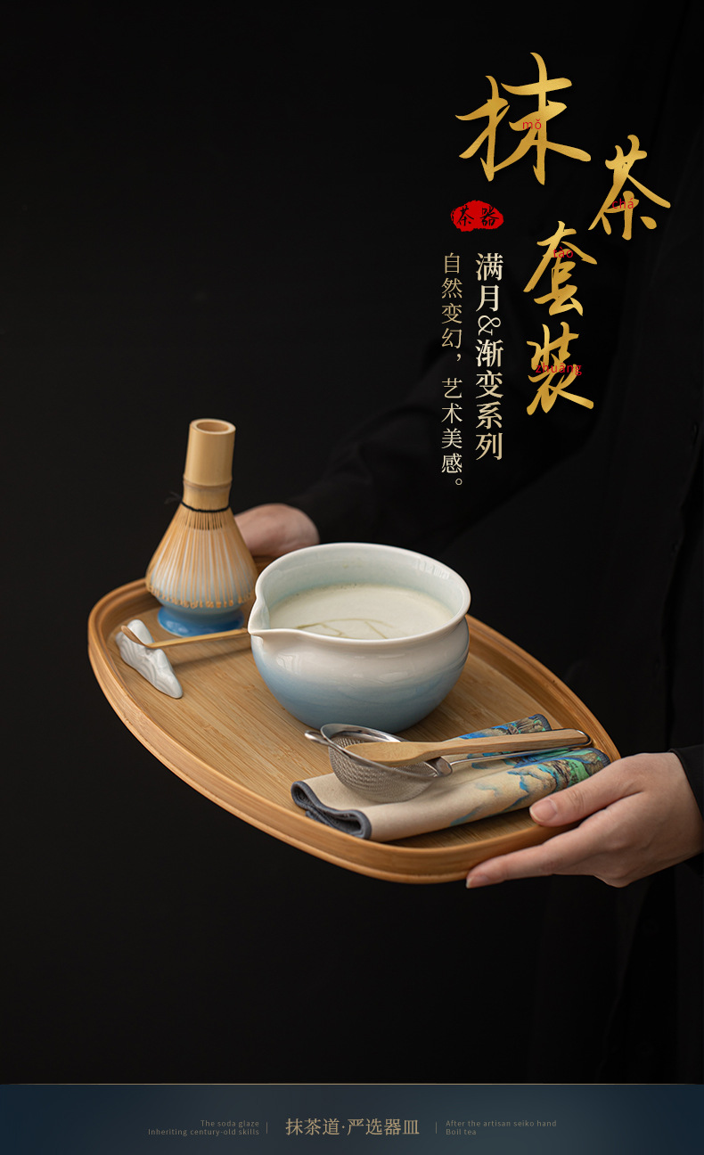 - Bộ Matcha Gradient Full Moon Giả Song Gốm sứ Điểm trà đạo Dụng cụ trộn Matcha Bát trà Phụ kiện trà đứng