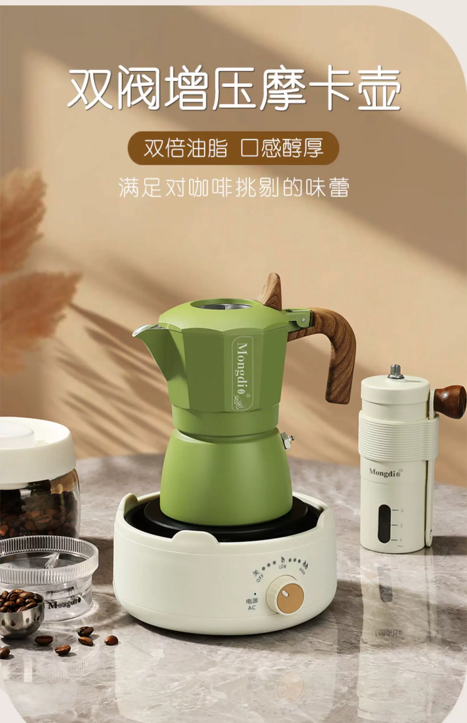 Bộ máy pha cà phê moka pot hai van Mongdio thế hệ thứ ba, máy pha cà phê kiểu Ý, thiết bị pha cà phê gia đình nhỏ gọn