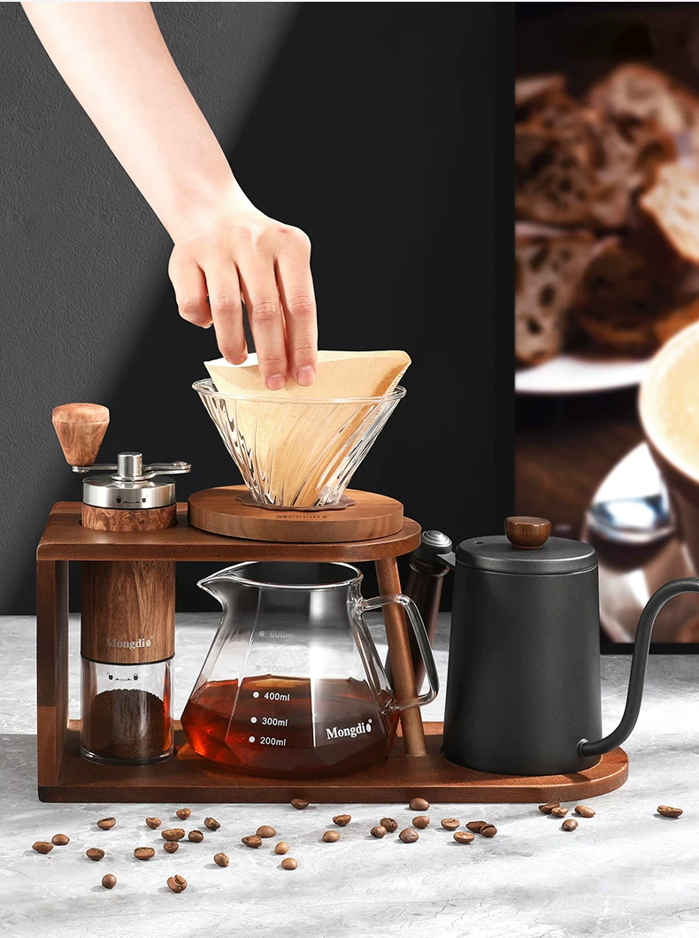 Bộ pha cà phê đổ nước Mongdio, máy xay cầm tay, giá để đồ quay tay, bộ ấm pha cà phê đổ nước hoàn chỉnh