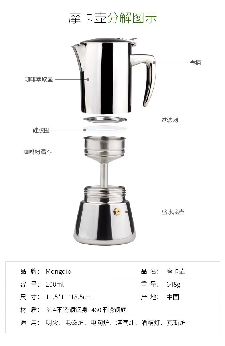 - Bộ pha cà phê Moka bằng thép không gỉ, máy xay cà phê bằng tay, máy pha cà phê espresso, bộ pha cà phê thủ công