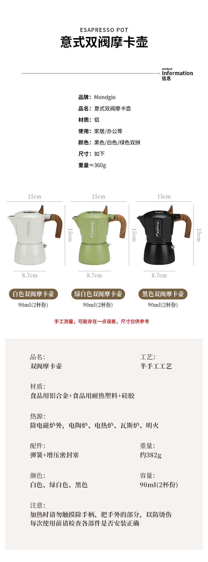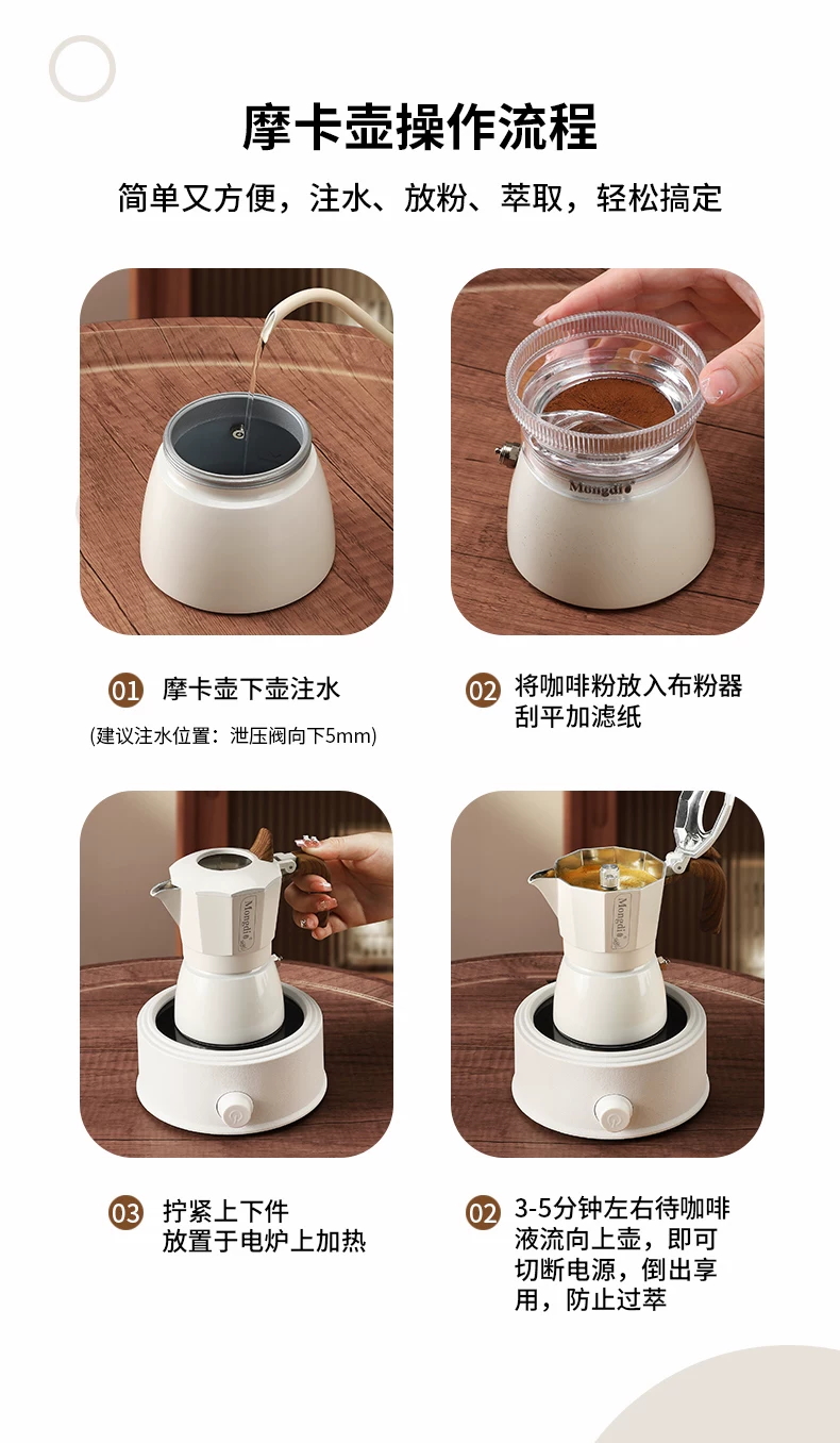 - Bộ pha cà phê Moka pot hai van Mongdio, máy pha cà phê espresso gia dụng, ấm pha cà phê Moka
