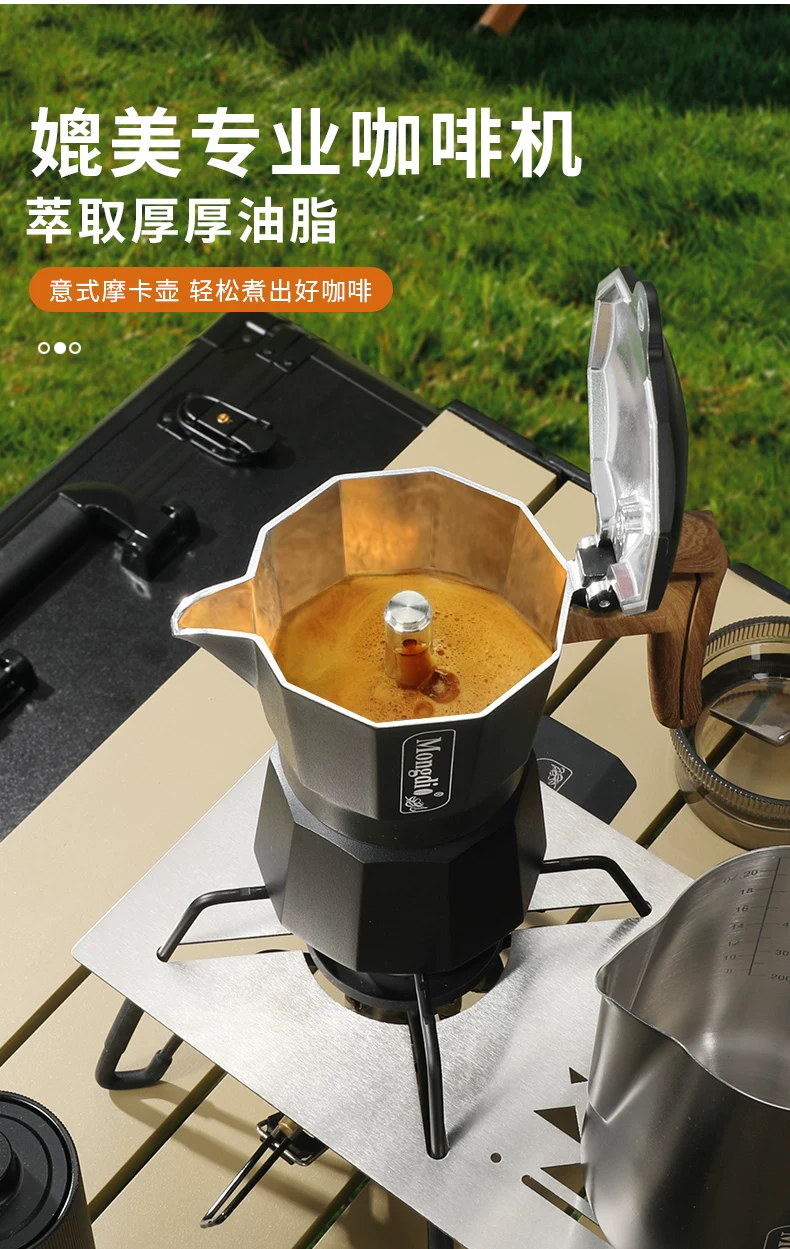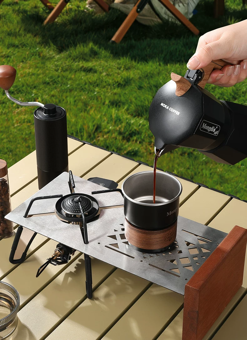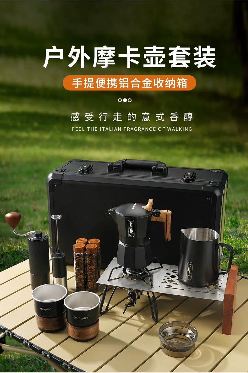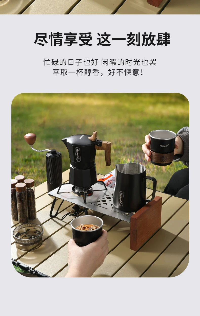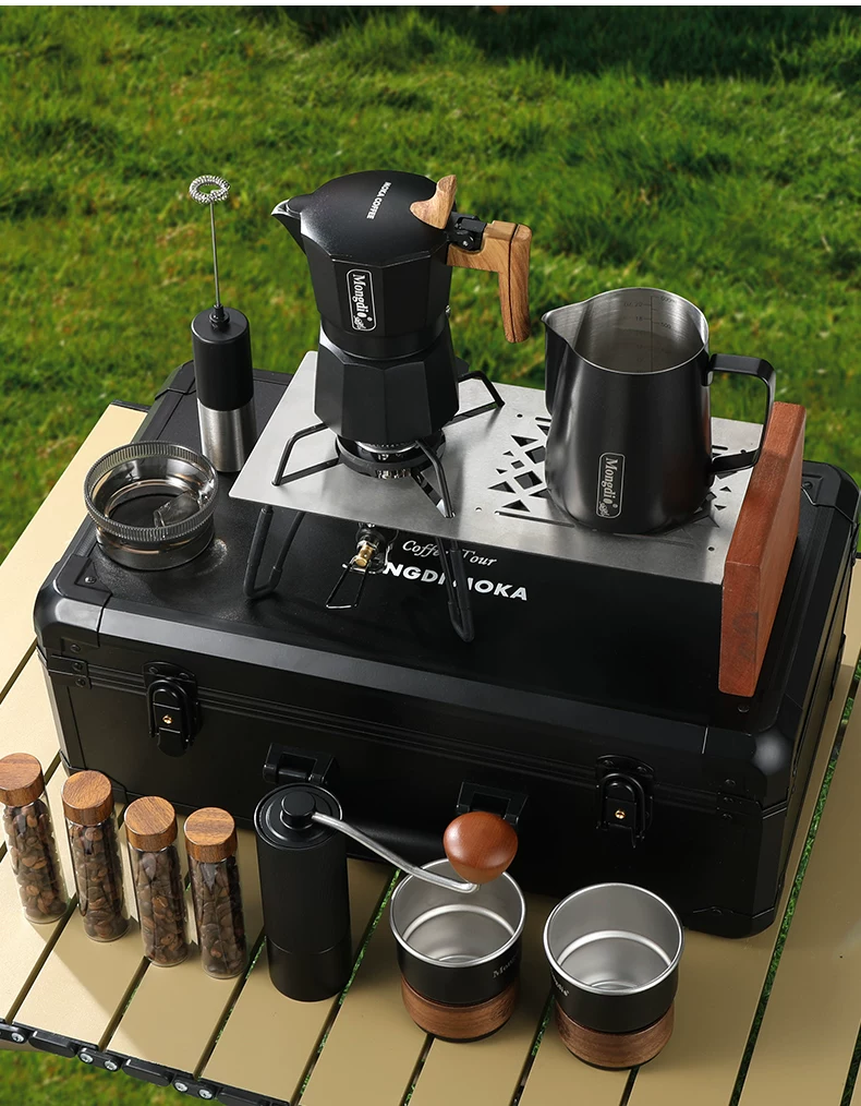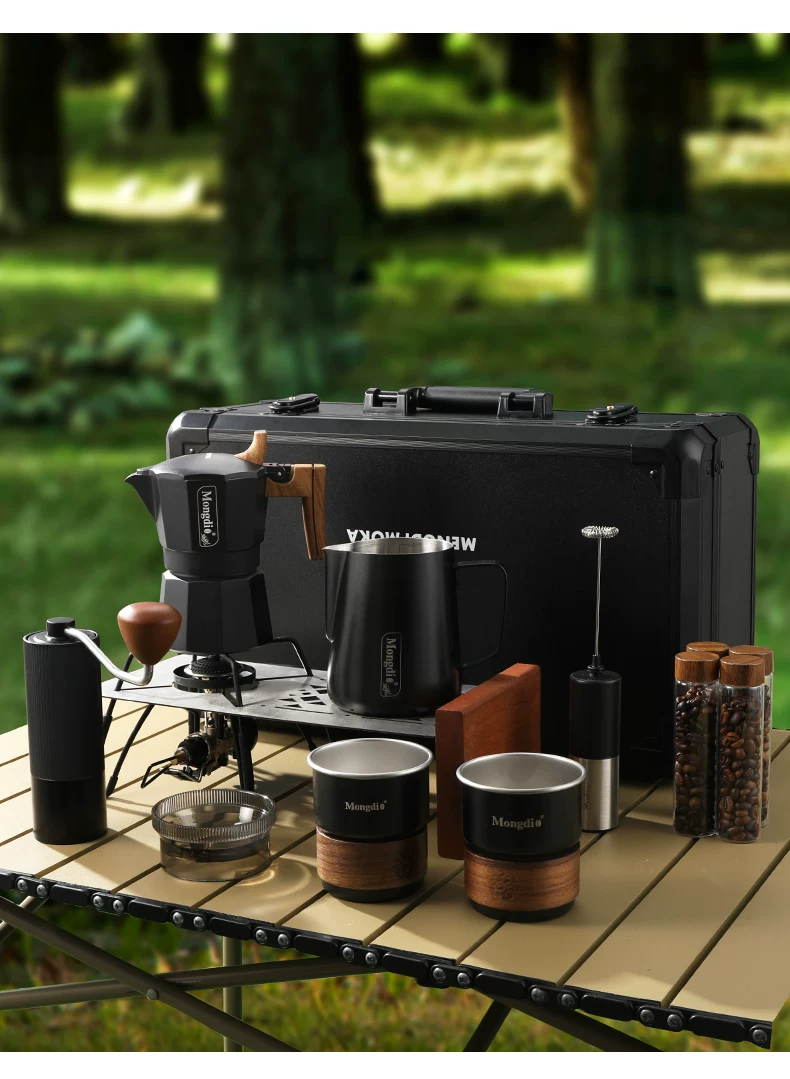 - Bộ pha cà phê Moka pot hai van Mongdio, thiết bị pha cà phê di động ngoài trời, dụng cụ pha cà phê cắm trại, hộp quà tặng đầy đủ
