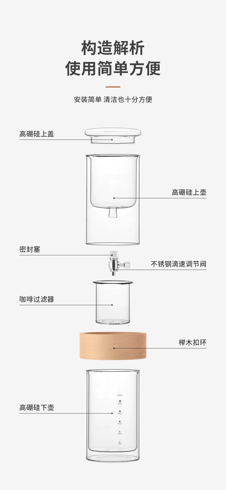 Bộ pha cà phê nhỏ giọt bằng thủy tinh gia dụng, ấm pha cà phê lạnh, bộ pha cà phê thủ công, ấm pha cà phê nhỏ giọt Mongdio