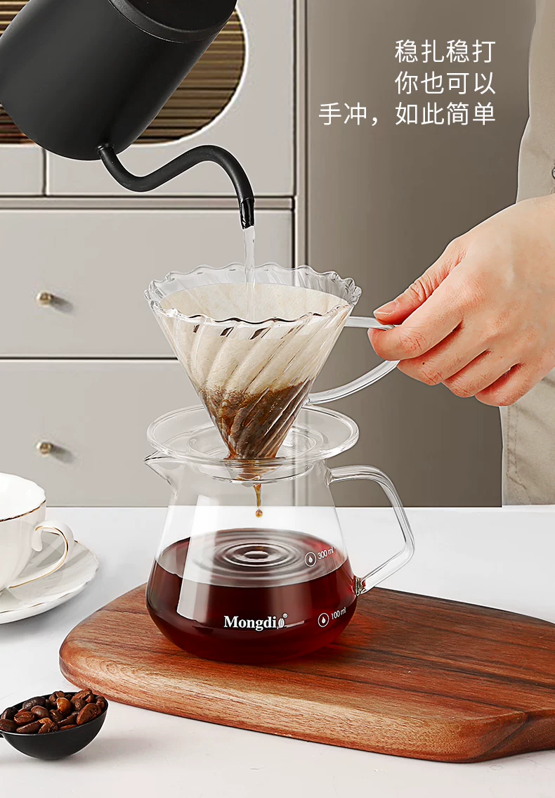 - Bộ pha cà phê Pour-over Mongdio, ấm pha cà phê, cốc lọc, ấm chia cà phê, ấm nhỏ giọt, dụng cụ pha cà phê gia đình