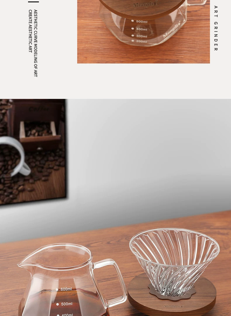 - Bộ pha cà phê Pour-over Mongdio, Bình pha cà phê Pour-over, Bình dùng chung, Cốc lọc, Máy xay cầm tay, Bộ dụng cụ pha cà phê đầy đủ