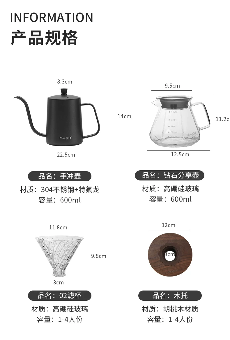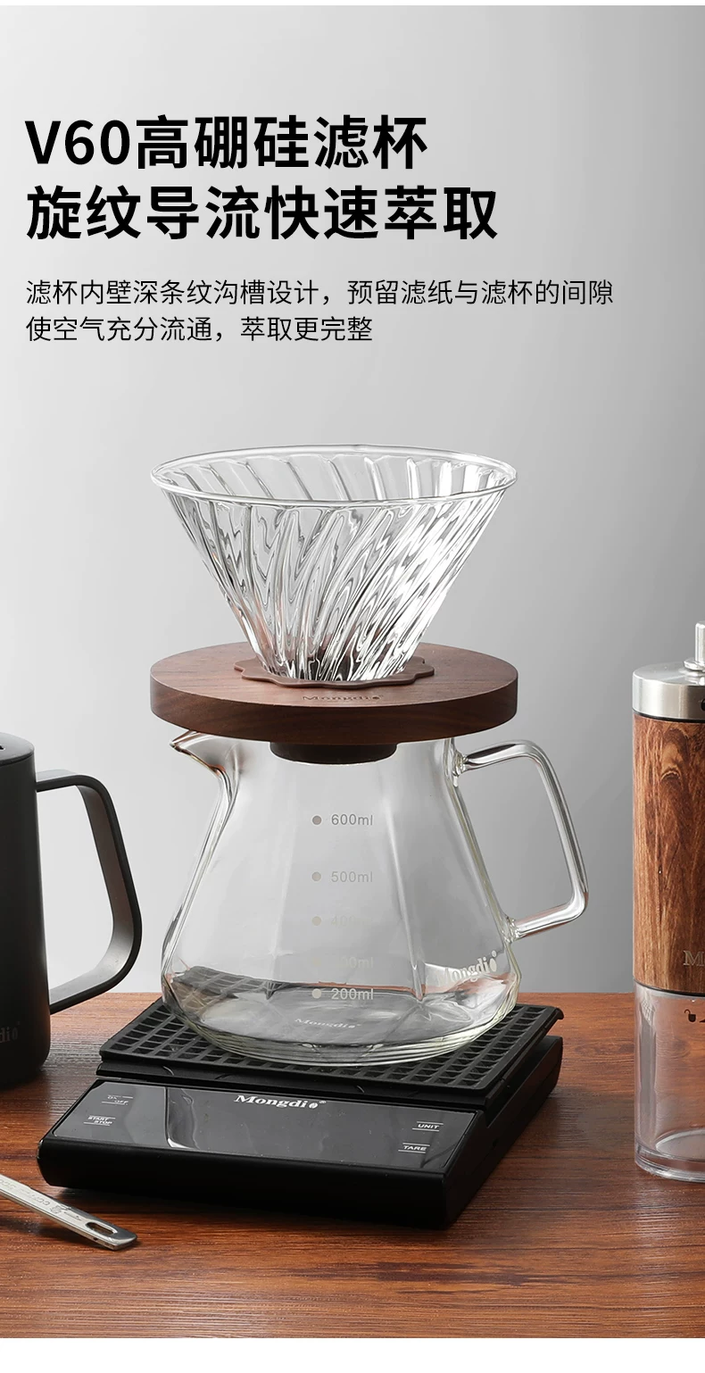 - Bộ pha cà phê Pour-over Mongdio V60, cốc lọc cà phê, ấm pha cà phê, ấm chia sẻ, bộ pha cà phê bằng thủy tinh