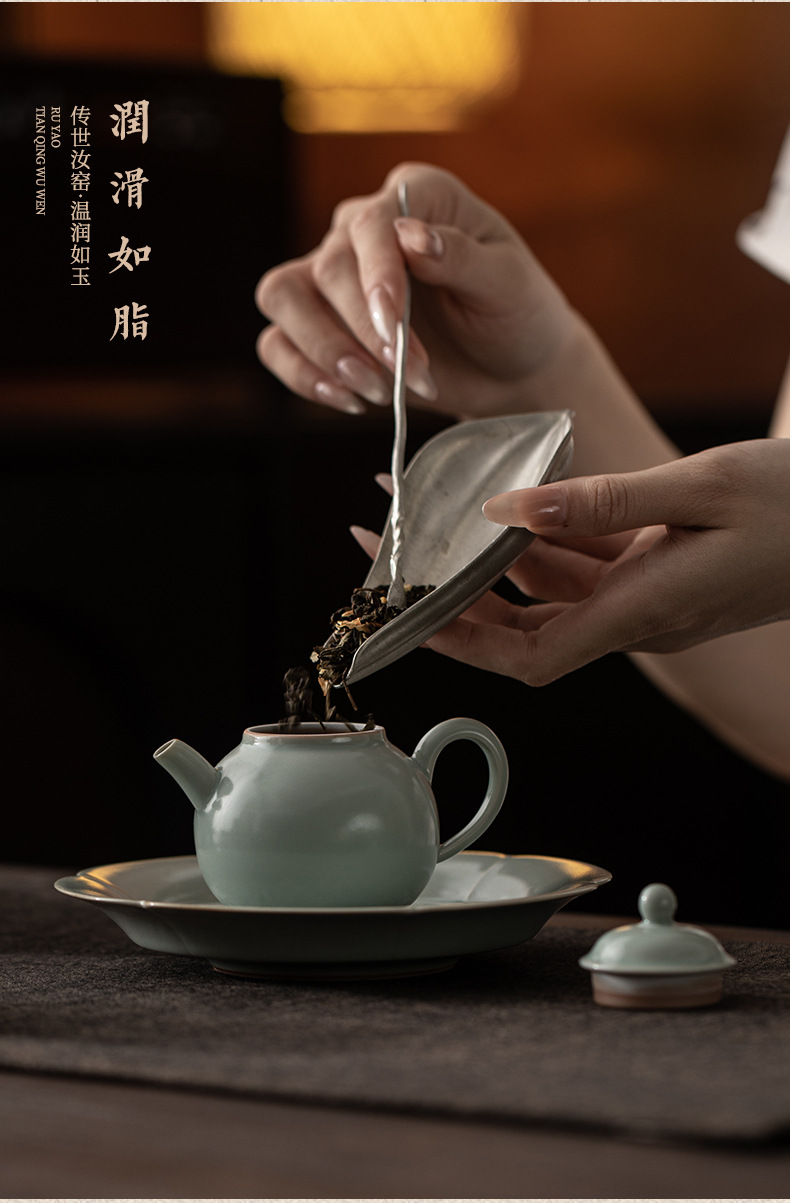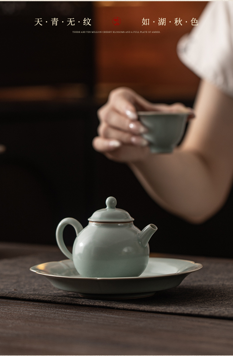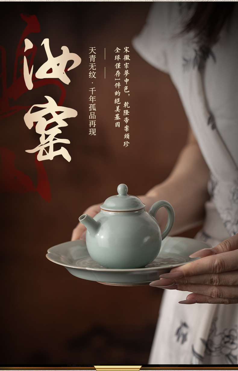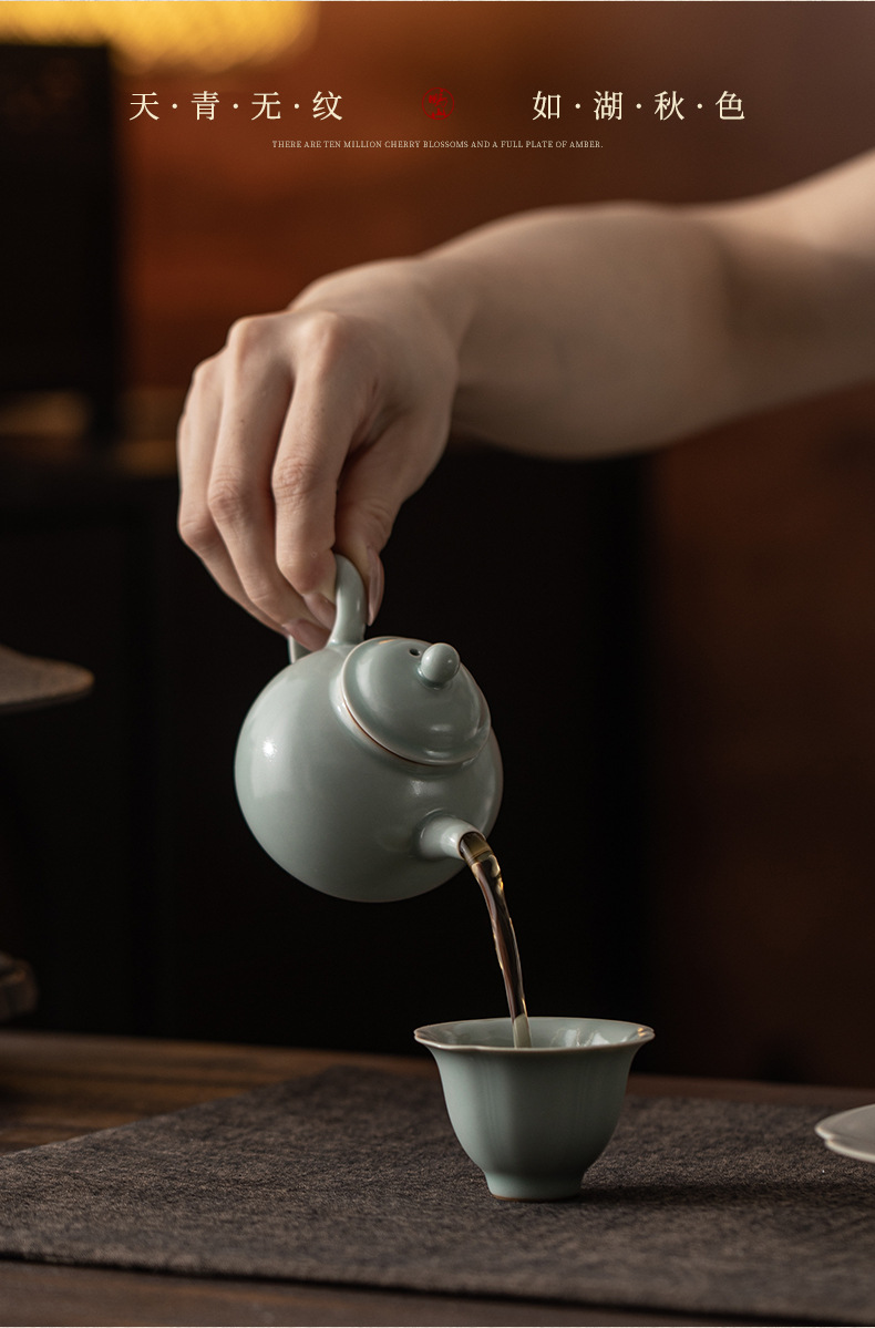 - Bộ quà tặng Sky Blue Ru Kiln Dream Pot dành cho gia đình, Bình đơn bằng gốm sứ kiểu Trung Quốc, Bình trà cầm tay không nóng.