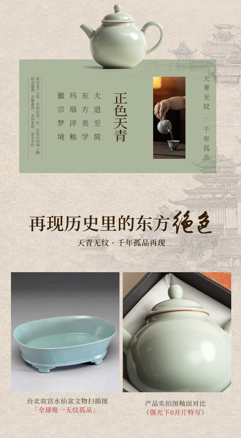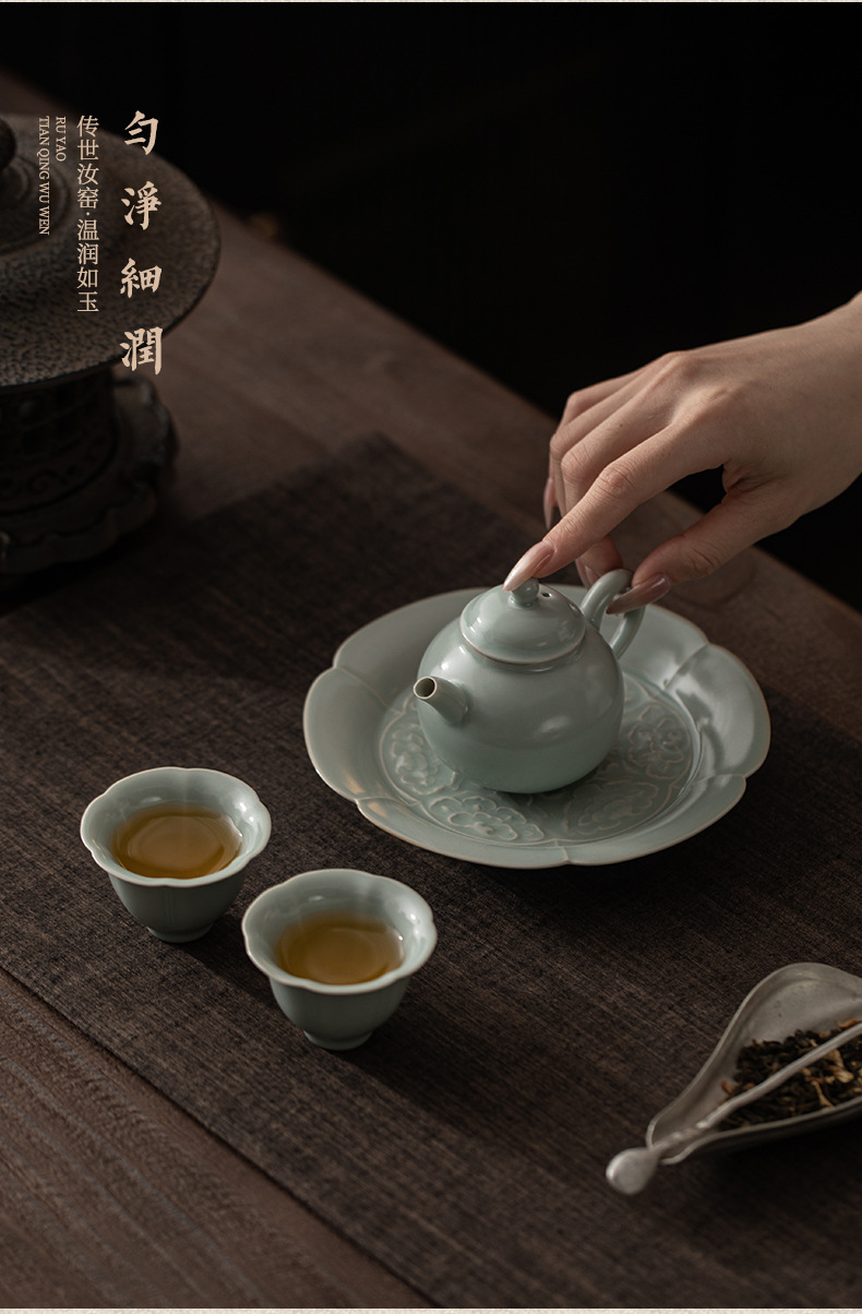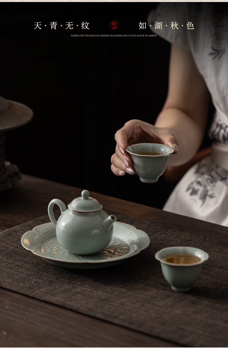 - Bộ quà tặng Sky Blue Ru Kiln Dream Pot dành cho gia đình, Bình đơn bằng gốm sứ kiểu Trung Quốc, Bình trà cầm tay không nóng.