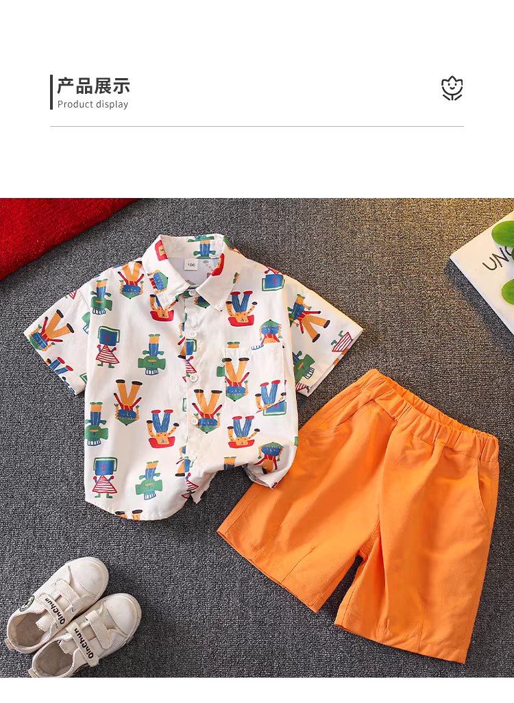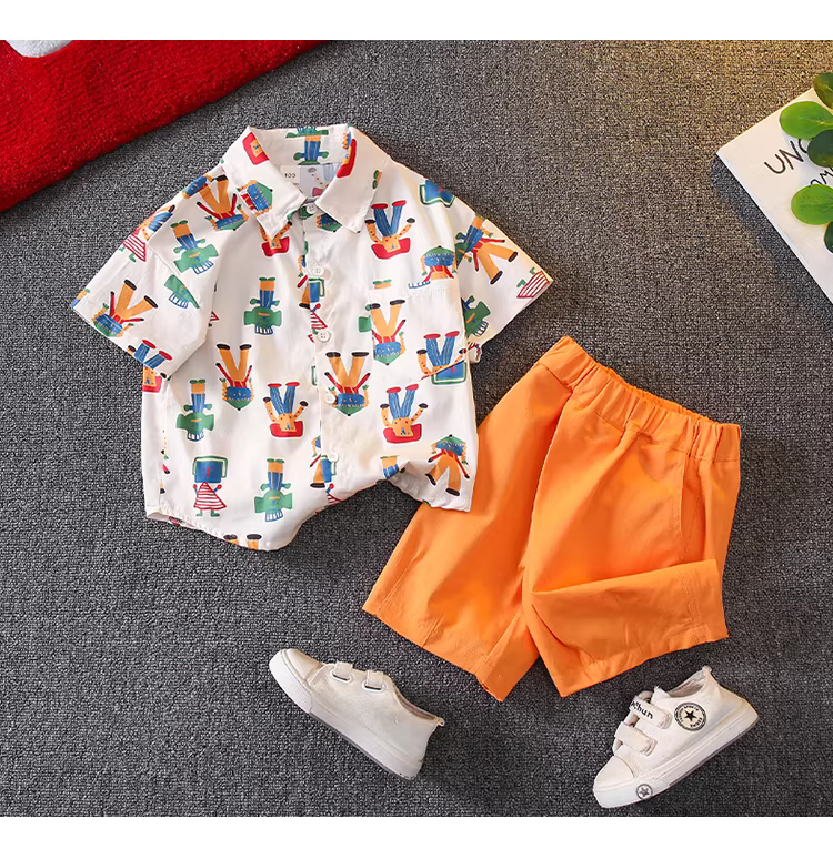 - Bộ quần áo hè 2025 cho bé, thời trang in hình toàn thân, áo thun ngắn tay, kiểu dáng thời trang