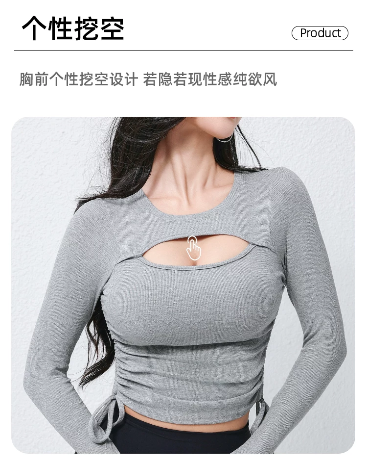 - Bộ quần áo tập yoga Jiumai Yipin dành cho nữ 2026 Mới Cao Cấp Dây Rút Thể Thao Hàng Đầu Chạy Bộ Pilates Dài Tay