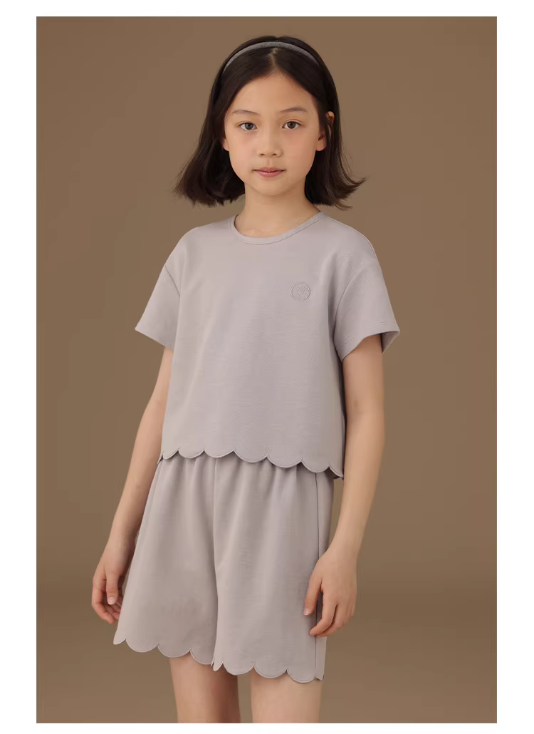 - Bộ quần áo trẻ em Hazi màu tím nhạt, kiểu dáng xòe, áo thun rộng rãi, quần short thể thao, bộ hè cho bé gái, kiểu mới 2025