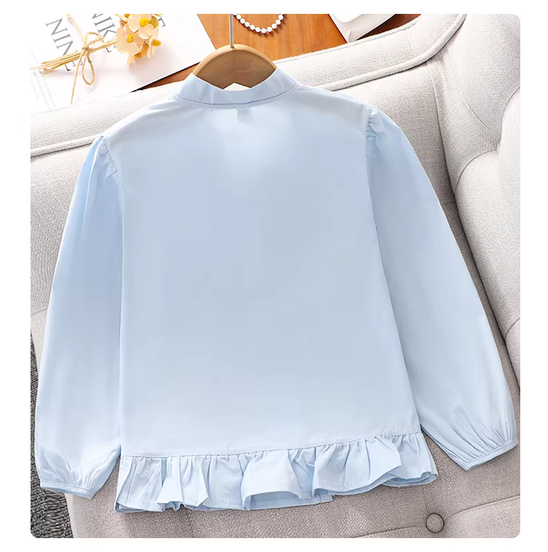 Bộ quần áo xuân thu bé gái 2025, áo sơ mi, áo gile, quần bò, phong cách preppy, bộ ba món