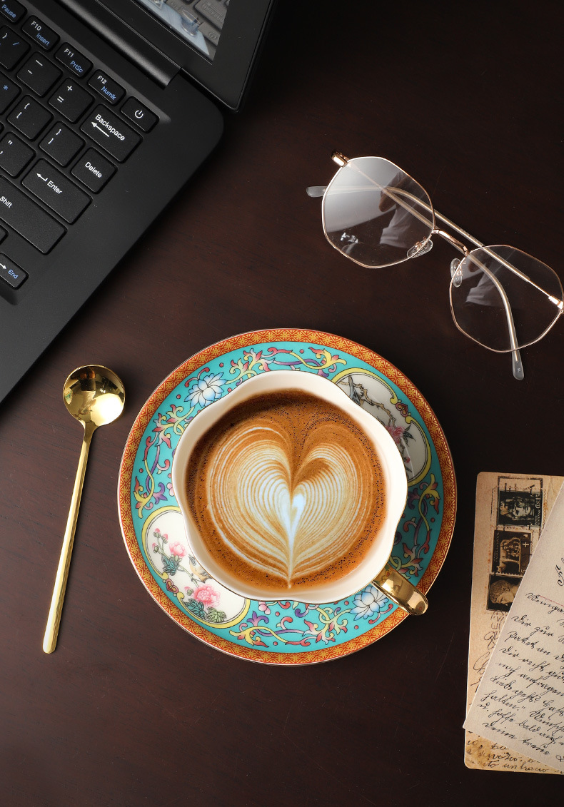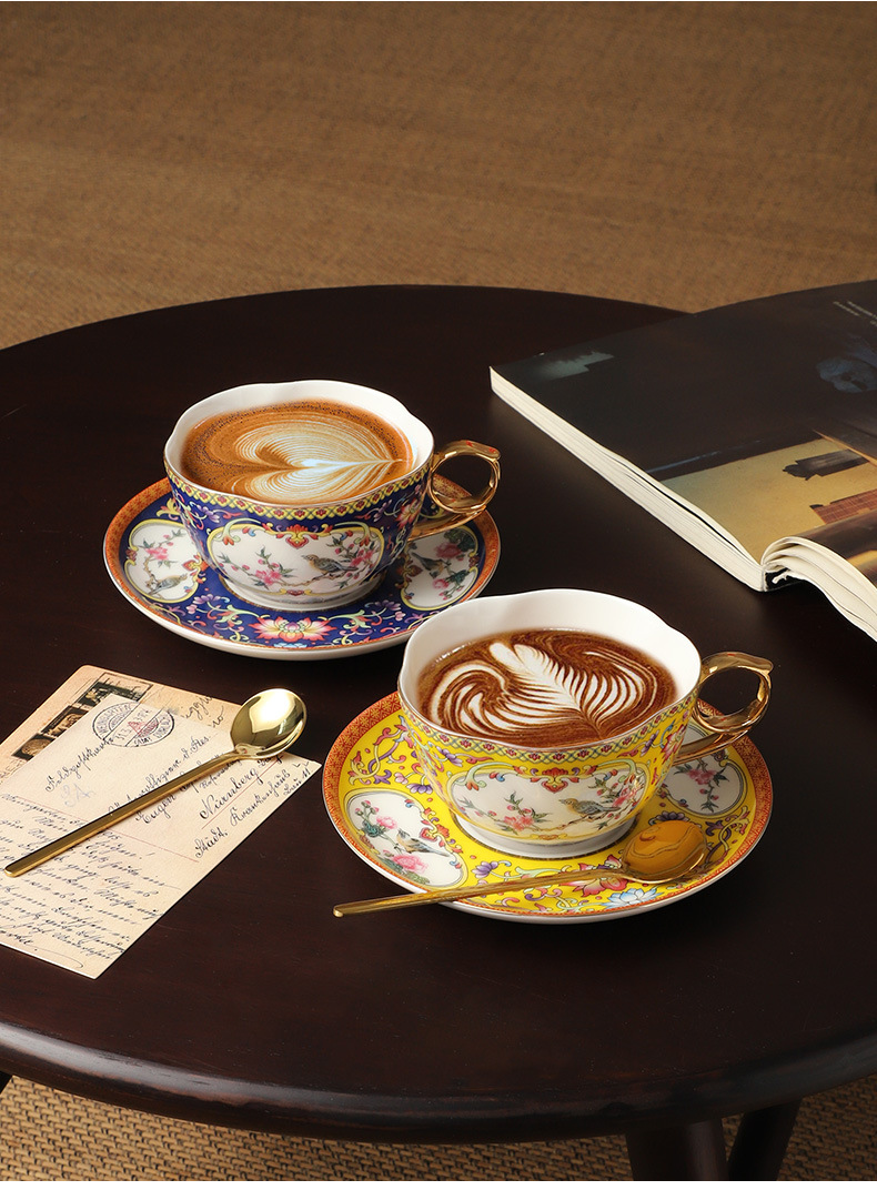 Bộ tách cà phê men cao cấp, bộ tách trà chiều nghệ thuật latte gốm sứ cao cấp tinh xảo dành cho phụ nữ xinh đẹp