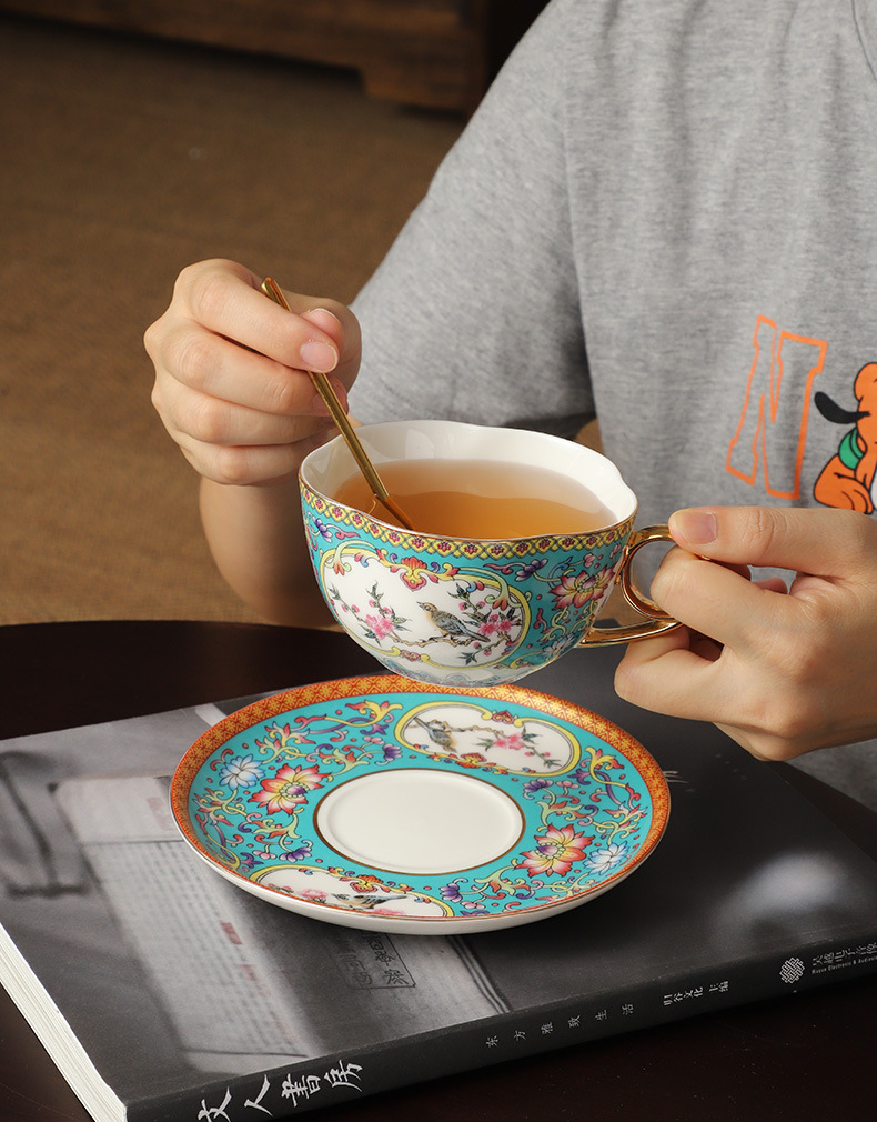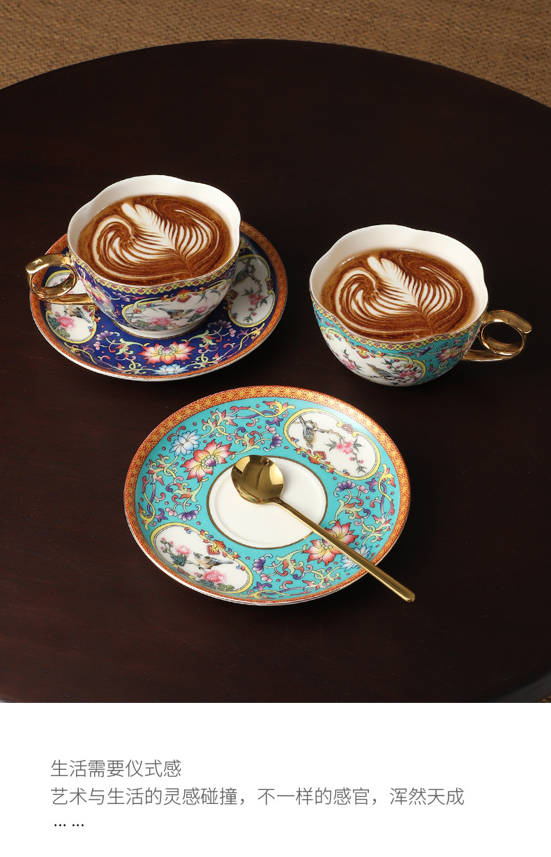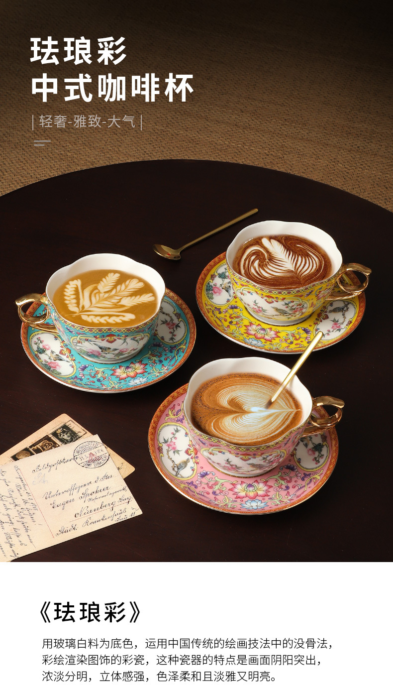 高级感珐琅彩咖啡杯套装高档精致陶瓷挂耳拉花下午茶杯子女高颜值