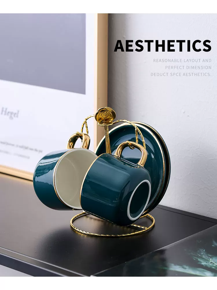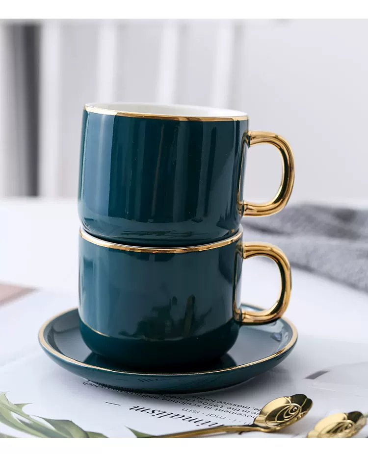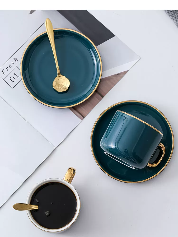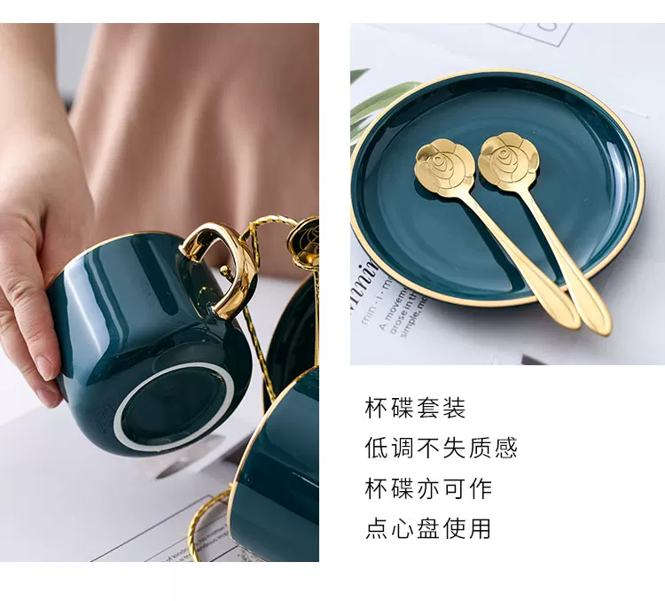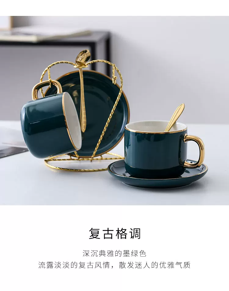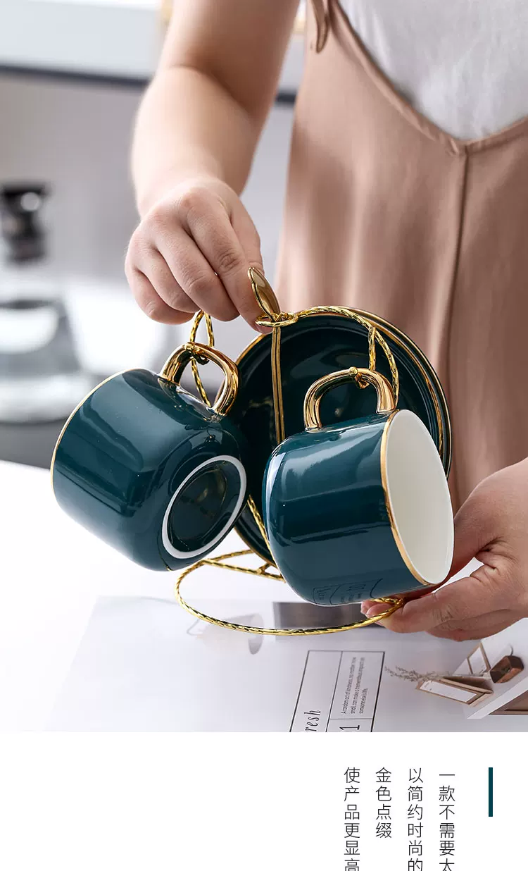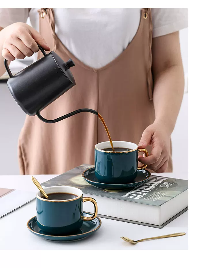 Bộ tách cà phê Mongdio latte dùng trong gia đình, phong cách châu Âu, sang trọng nhỏ gọn, phong cách ins, bộ cốc và đĩa sứ cao cấp tinh tế.
