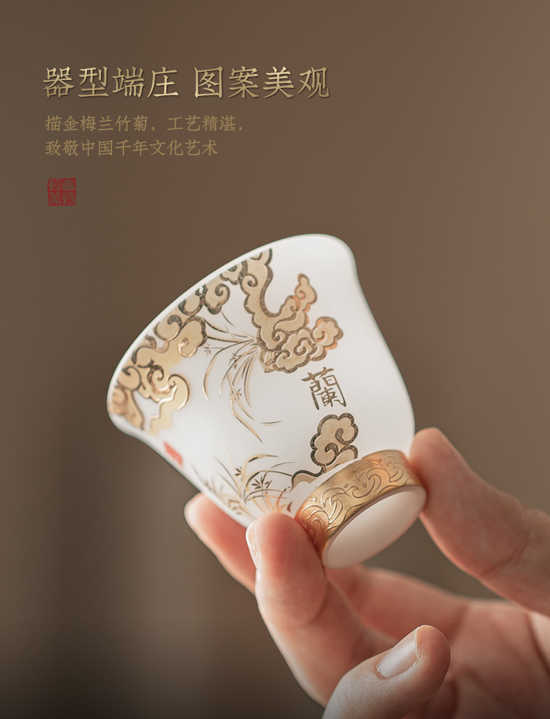 - Bộ tách trà bốn quý ông bằng sứ đá vàng, mận, lan, trúc, cúc, cốc chủ nhân, cốc trà gốm sứ, cốc trà, cốc thơm