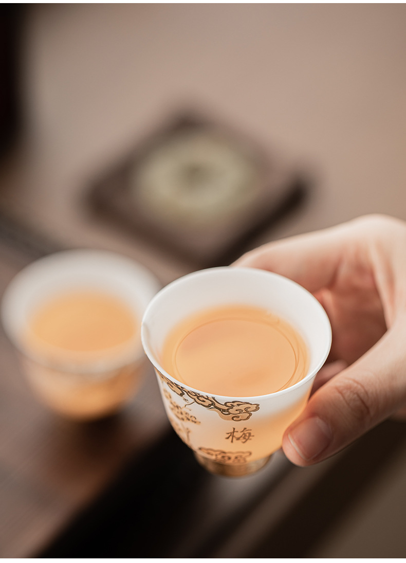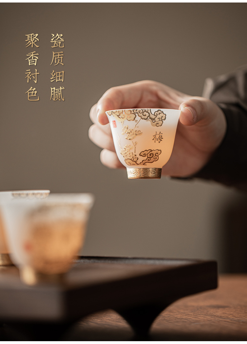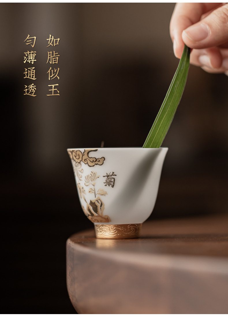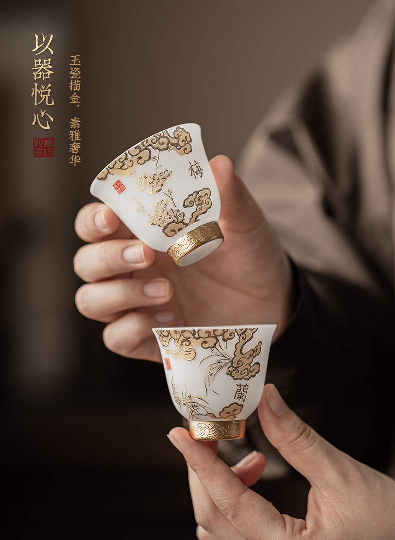 Bộ tách trà bốn quý ông bằng sứ đá vàng, mận, lan, trúc, cúc, cốc chủ nhân, cốc trà gốm sứ, cốc trà, cốc thơm