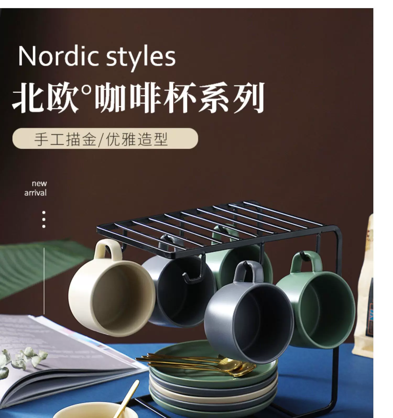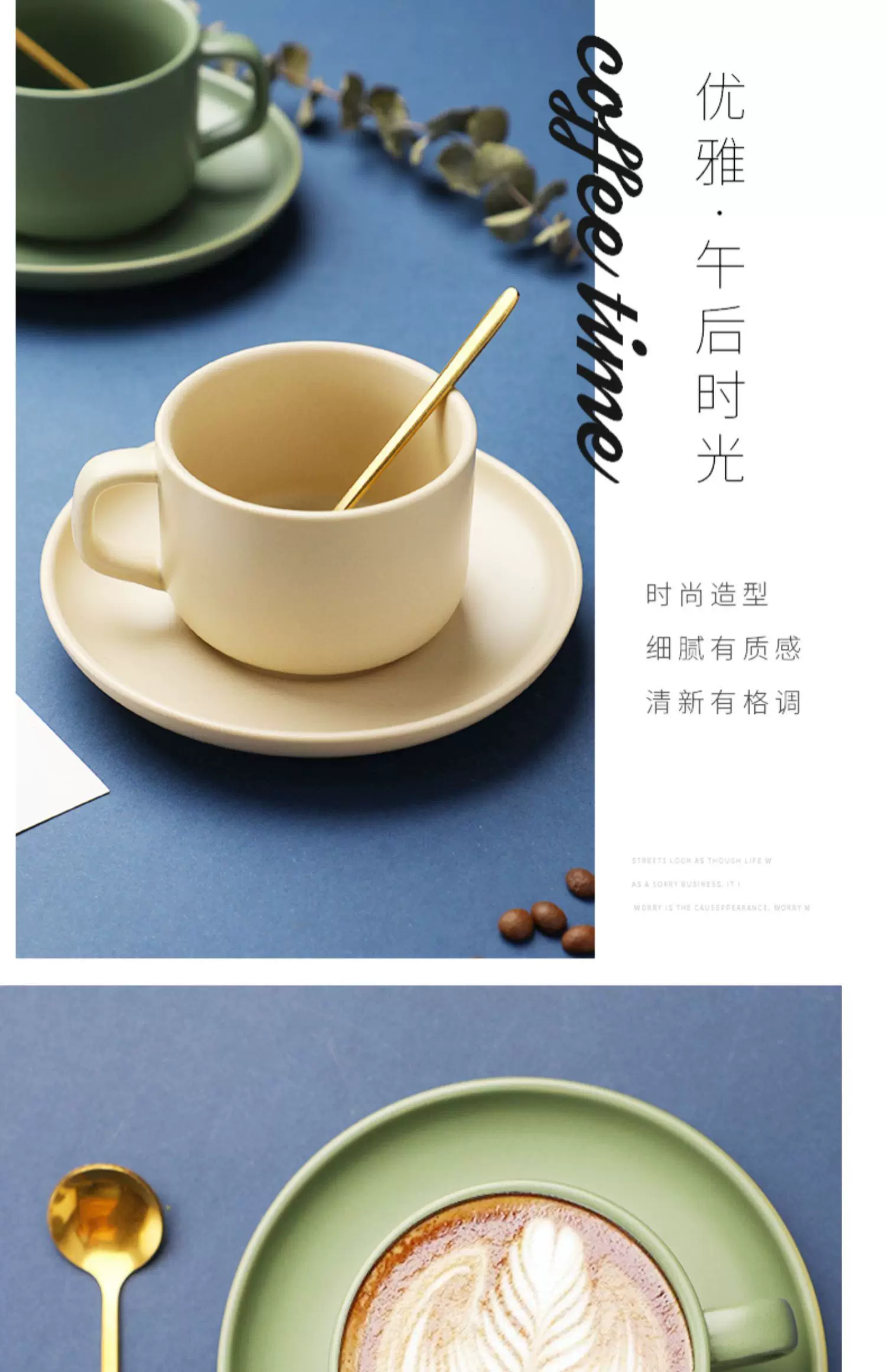 Bộ tách trà cà phê sứ cao cấp, bộ đồ ăn uống chiều, tách cà phê cao cấp, tách vẽ latte