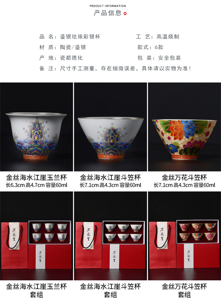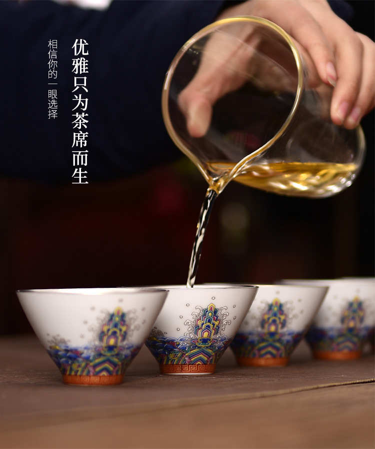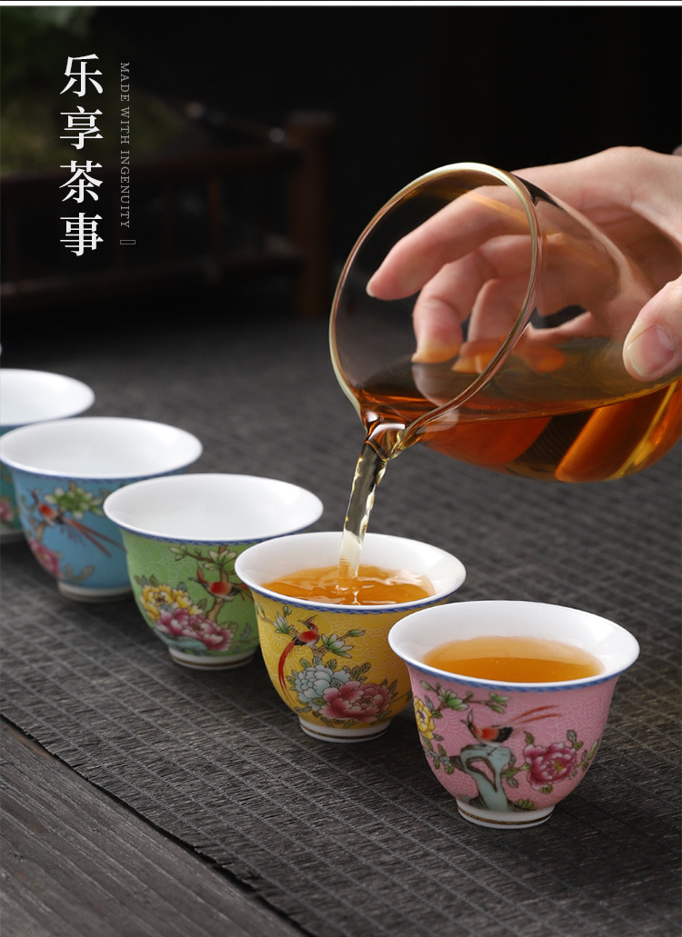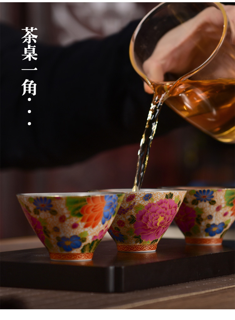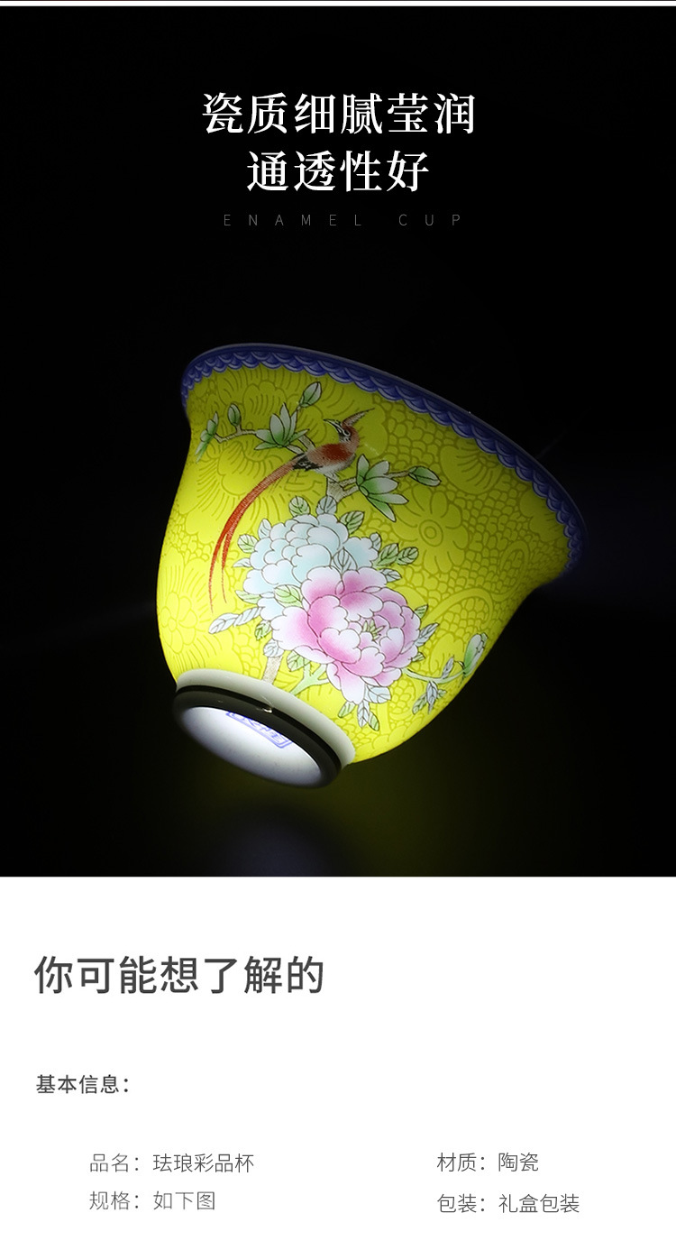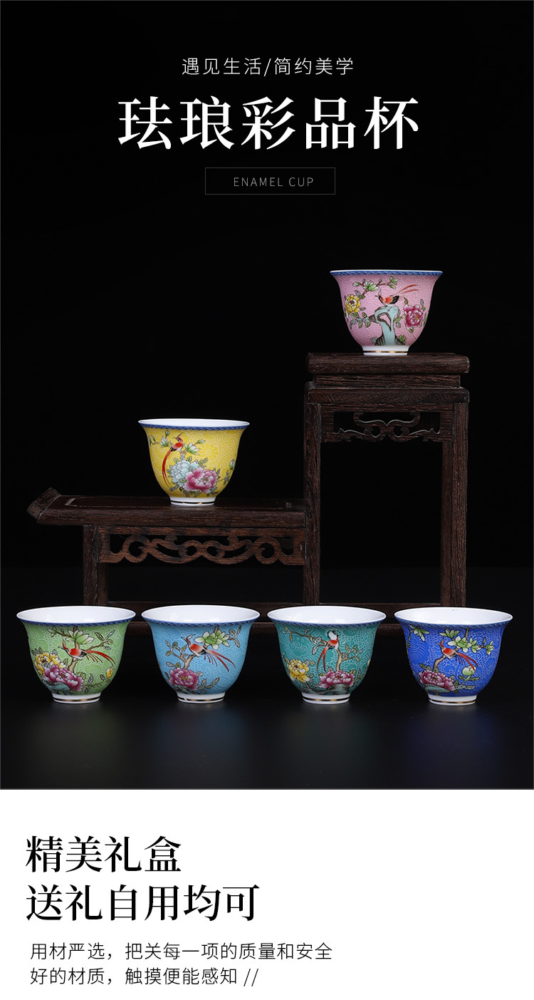 景德镇珐琅彩陶瓷功夫茶杯套装高级感主人杯品茗杯盖碗小茶杯一套