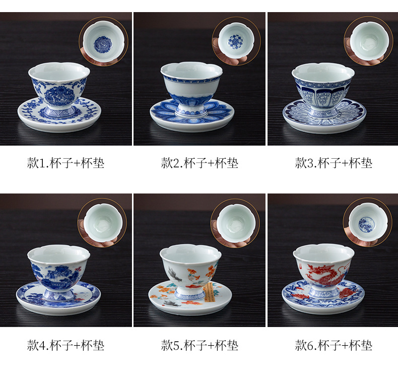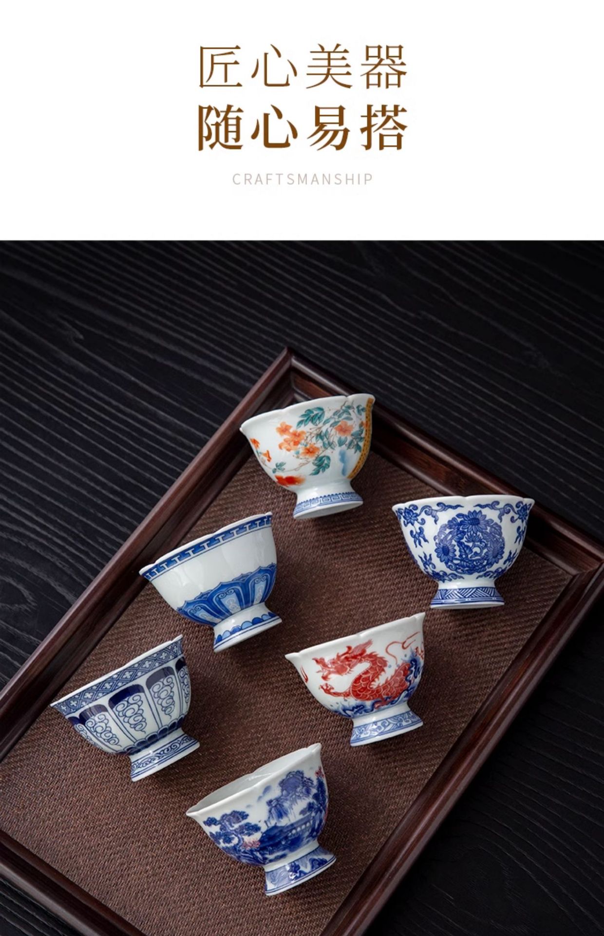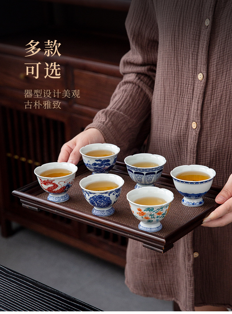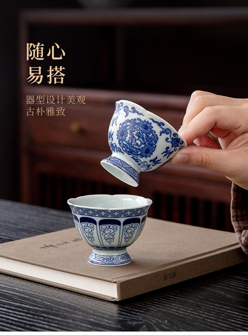 中式青花瓷茶杯套装复古功夫茶具陶瓷茶盏一人主人杯单杯小品茗杯