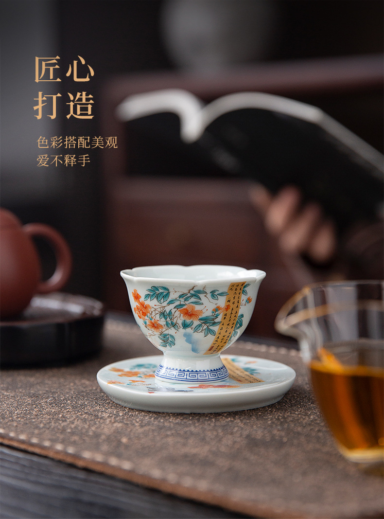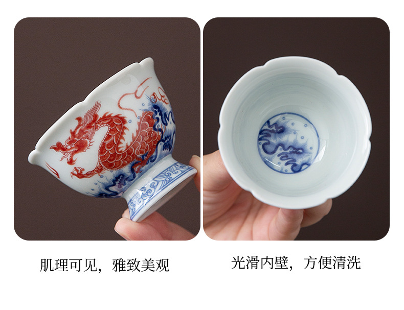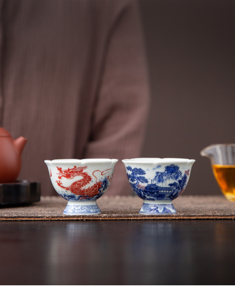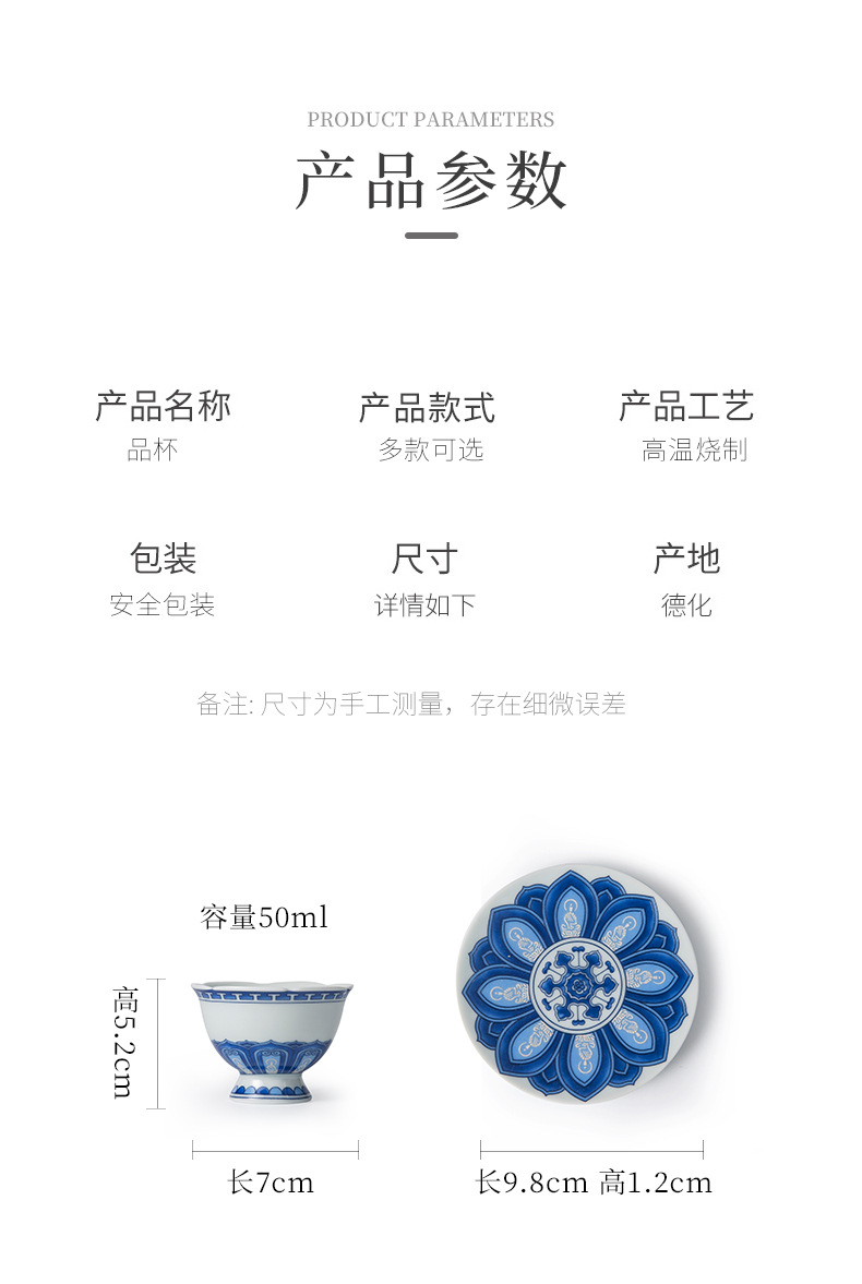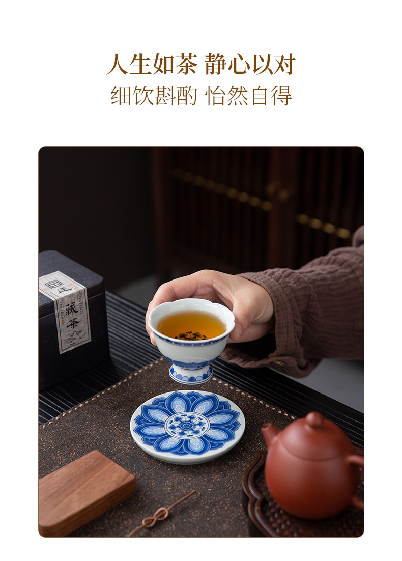 中式青花瓷茶杯套装复古功夫茶具陶瓷茶盏一人主人杯单杯小品茗杯