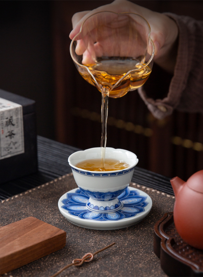- Bộ tách trà sứ trắng xanh kiểu Trung Quốc Bộ trà Kung Fu cổ điển chén trà gốm sứ một người chủ cốc đơn cốc nhỏ