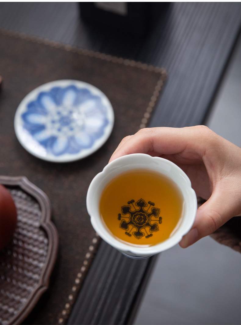 Bộ tách trà sứ trắng xanh kiểu Trung Quốc Bộ trà Kung Fu cổ điển chén trà gốm sứ một người chủ cốc đơn cốc nhỏ