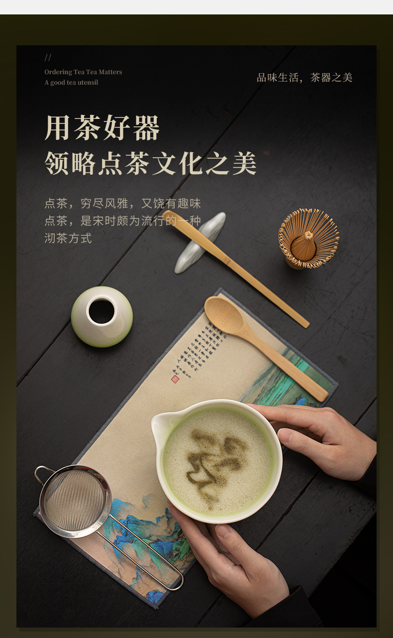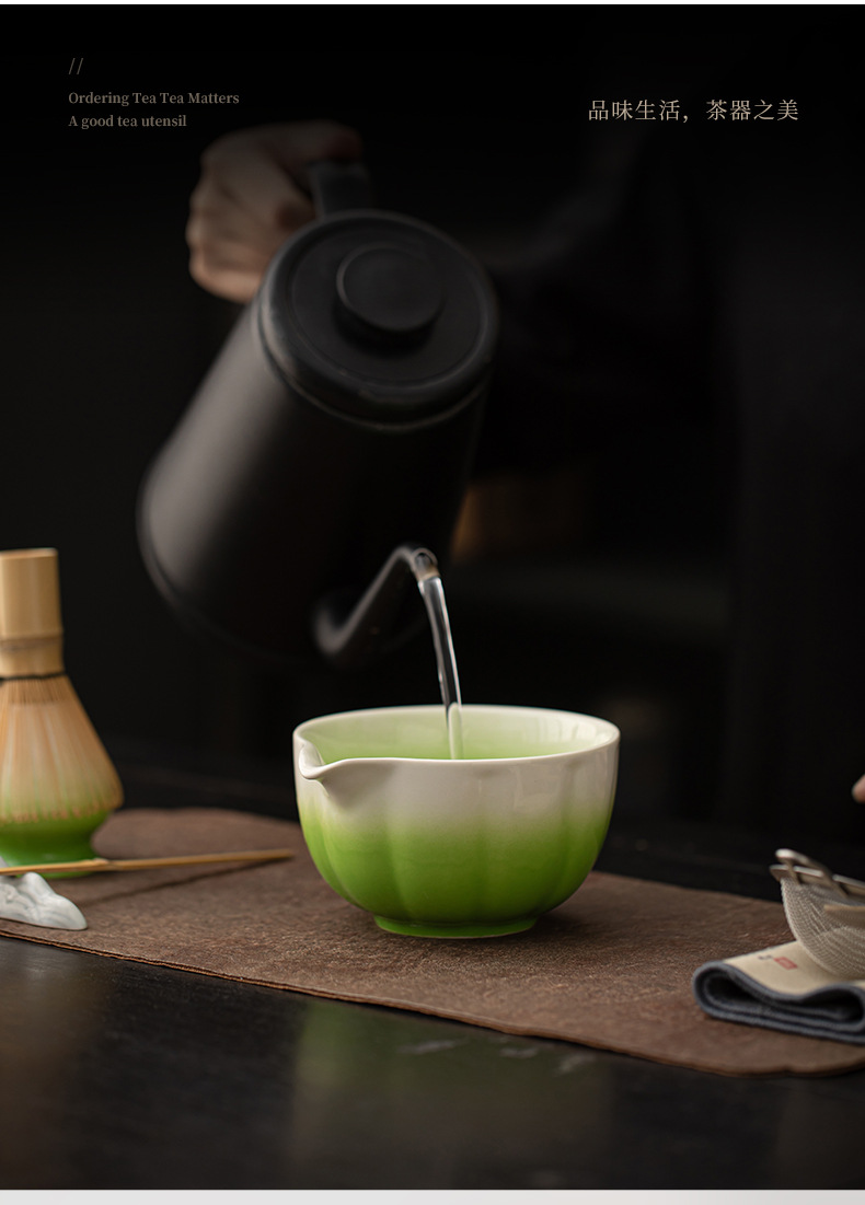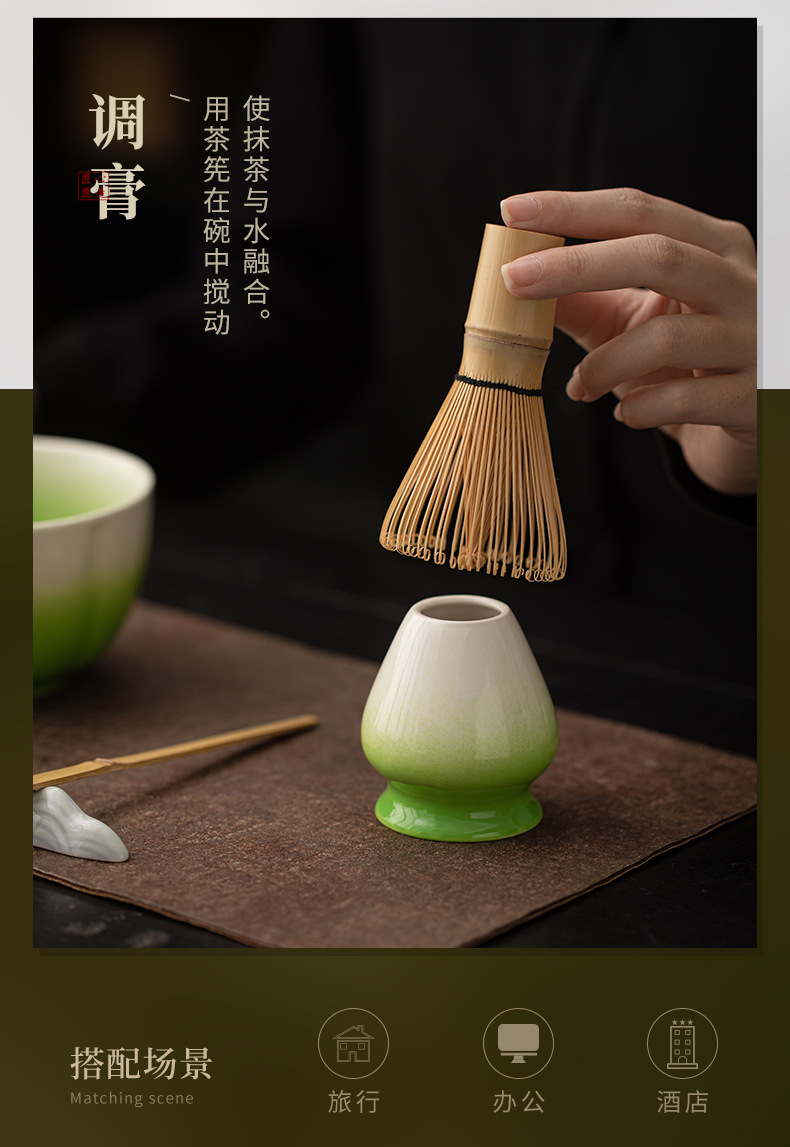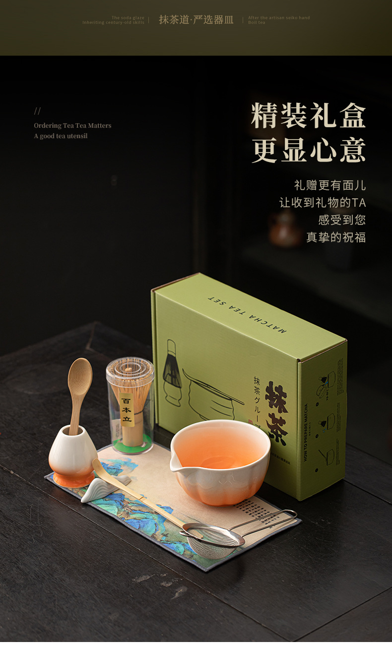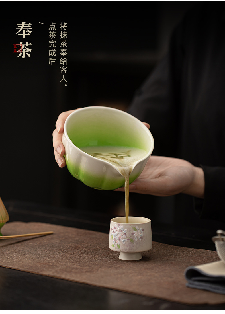 - Bộ tám món Matcha cánh hoa, phụ kiện bộ trà gốm sứ gradient, bát trà, bàn chải, bộ lọc, mô phỏng bài hát, trà đạo, trà đạo