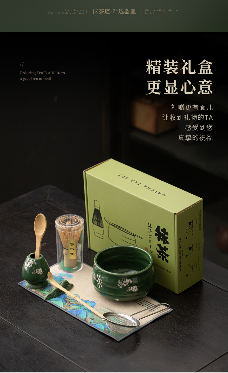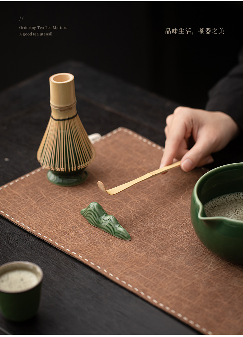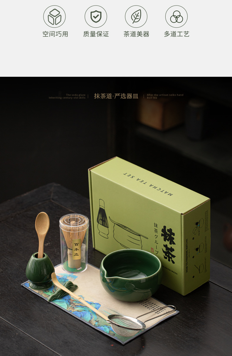 - Bộ tám món matcha màu xanh lá cây mô phỏng đồ uống trà gốm sứ nhà Tống, bát trà Baixi matcha, bình trà, bộ lọc đứng, phụ kiện bộ trà