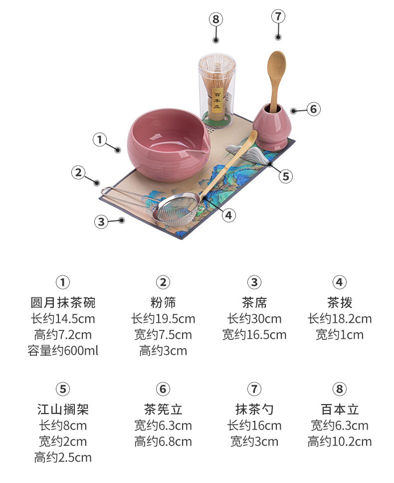 - Bộ tám món matcha thời Trung cổ, bộ dụng cụ đặt trà thời Tống, bát matcha gốm sứ Baixi, bình trà, bình bột đứng, muỗng trà
