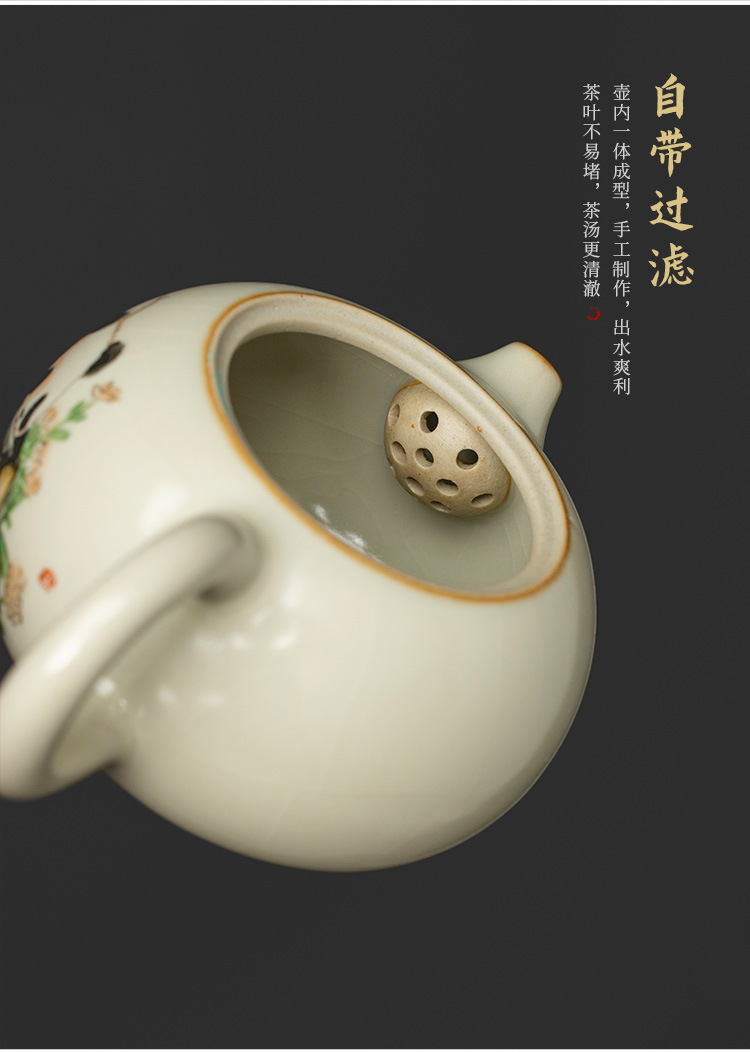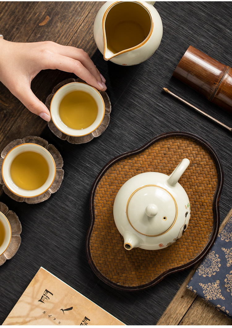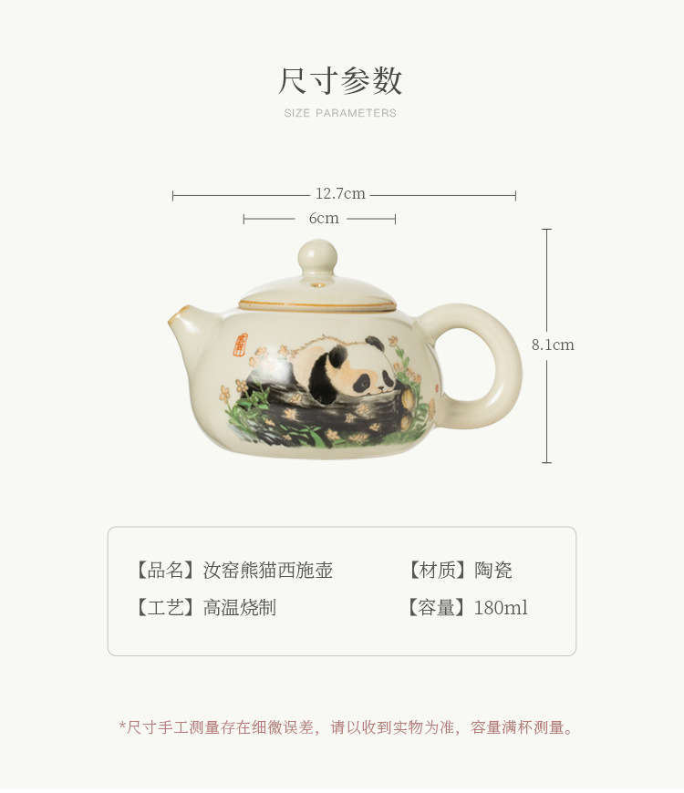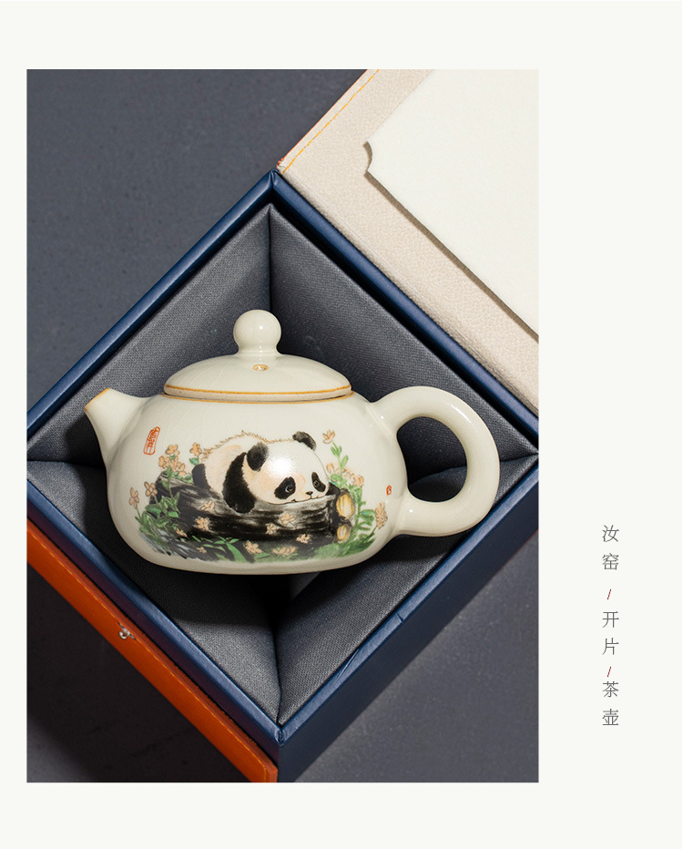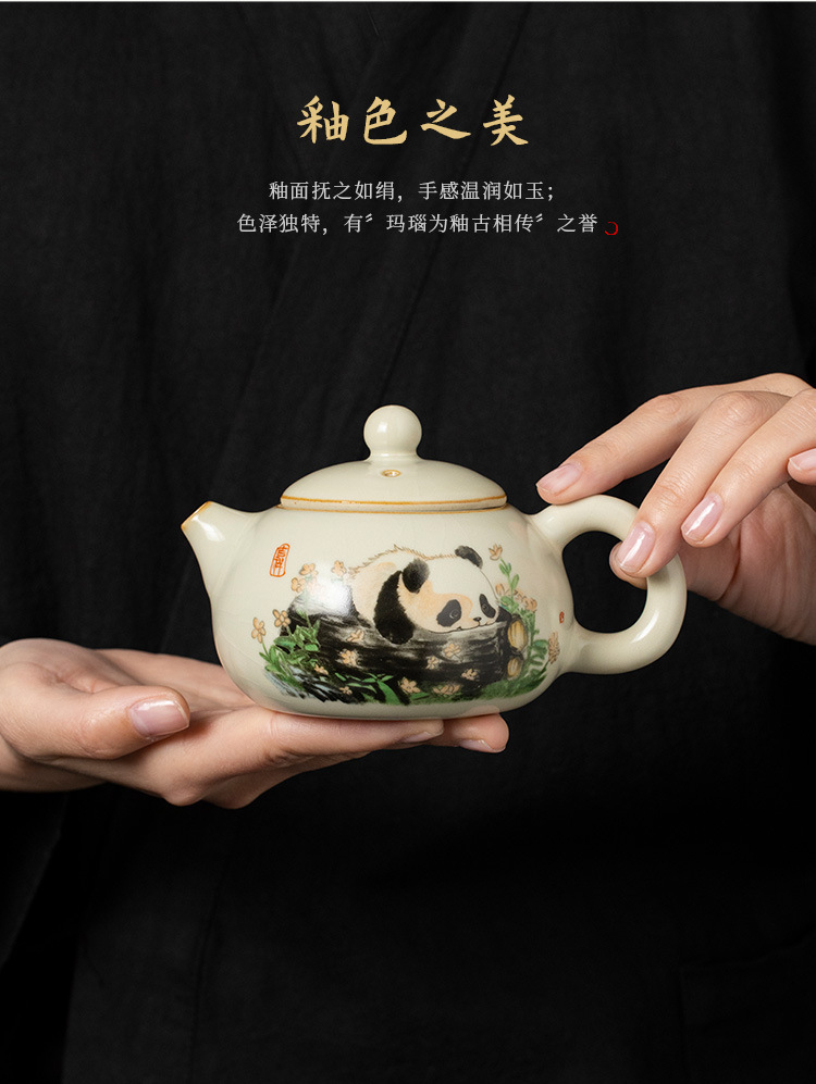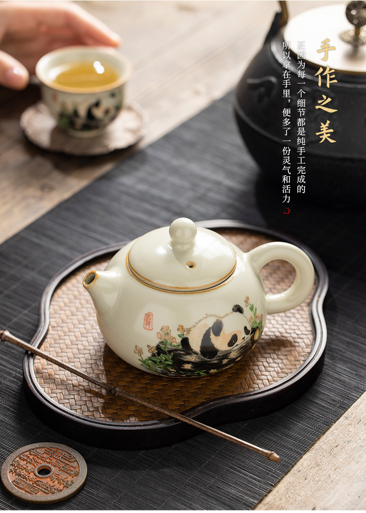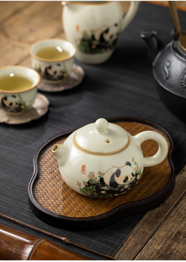 - Bộ trà bát có nắp 3 tài gốm sứ Ru Kiln Panda Bộ trà Kung Fu một ấm sáu chén cao cấp cho phòng khách gia dụng