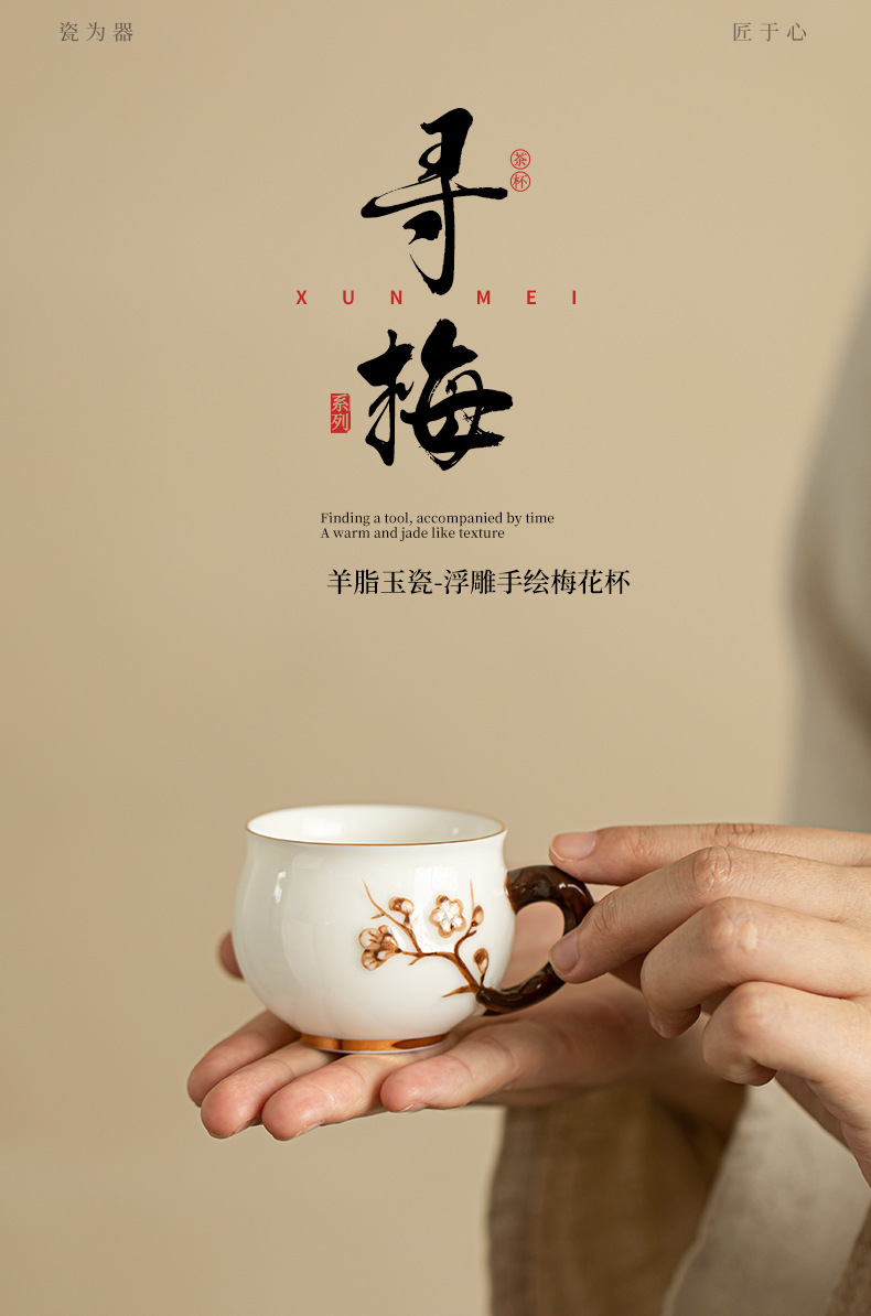 Bộ trà Dehua tách trà ngọc bích mỡ cừu thủ công bộ trà gốm sứ cốc chủ nhân tách trà cốc cà phê bộ trà Kung Fu