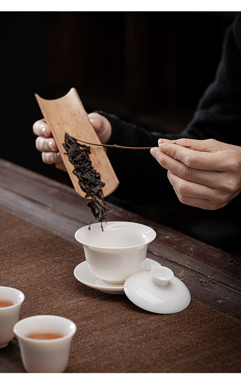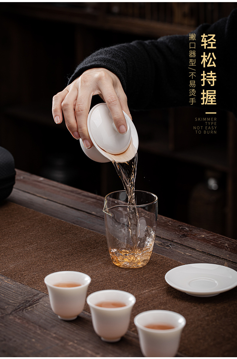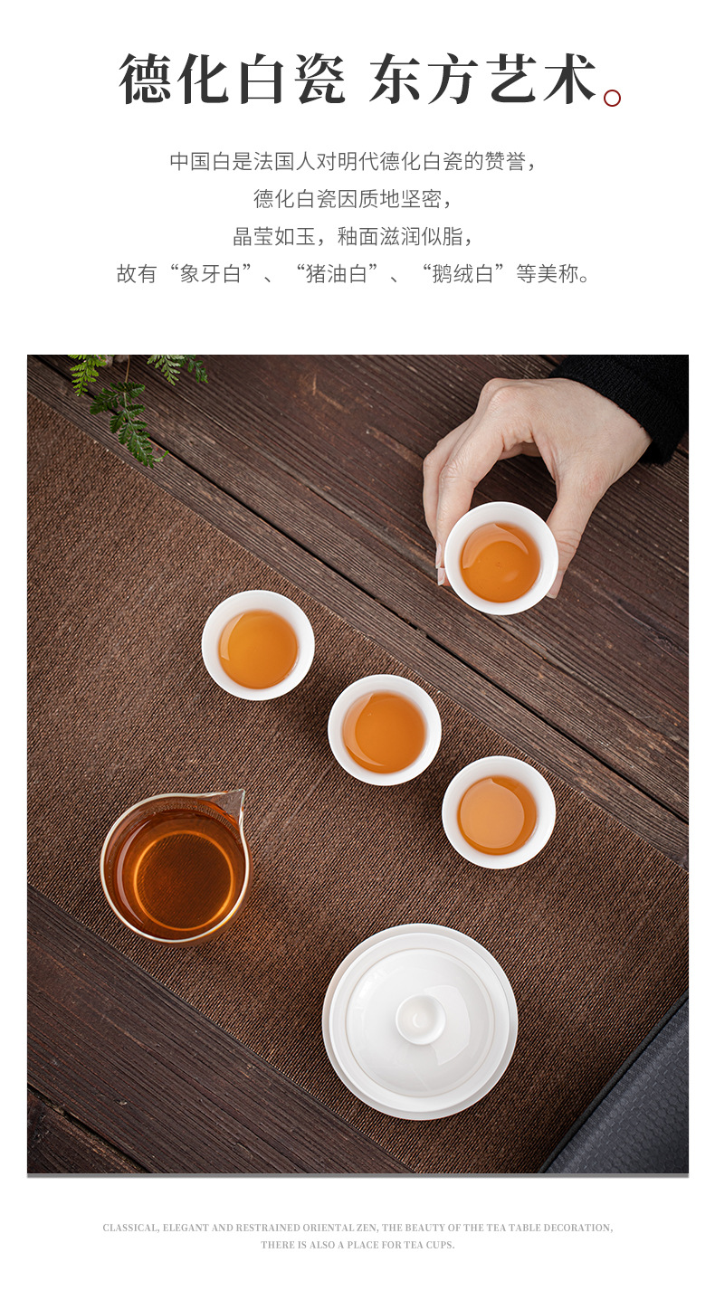 Bộ trà du lịch bằng sứ trắng ngọc bích Dehua 1 bát có nắp 4 tách trà Bộ trà Kung Fu du lịch di động ngoài trời