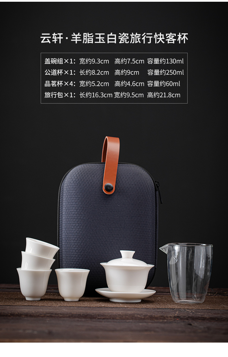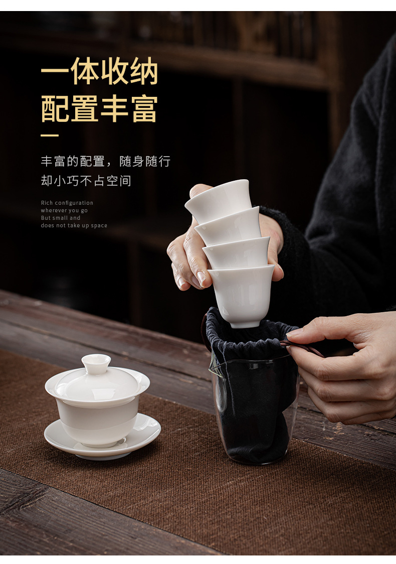 - Bộ trà du lịch bằng sứ trắng ngọc bích Dehua 1 bát có nắp 4 tách trà Bộ trà Kung Fu du lịch di động ngoài trời