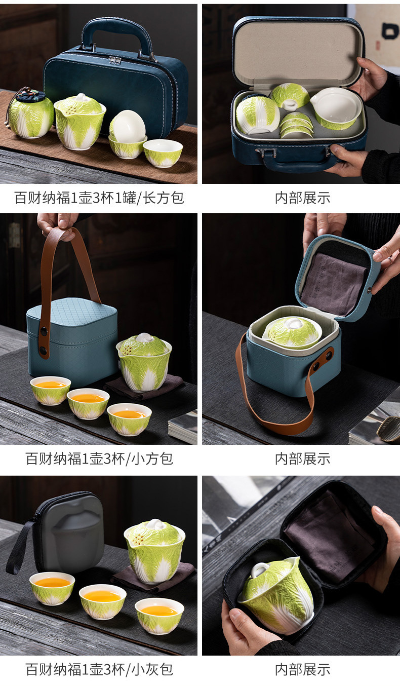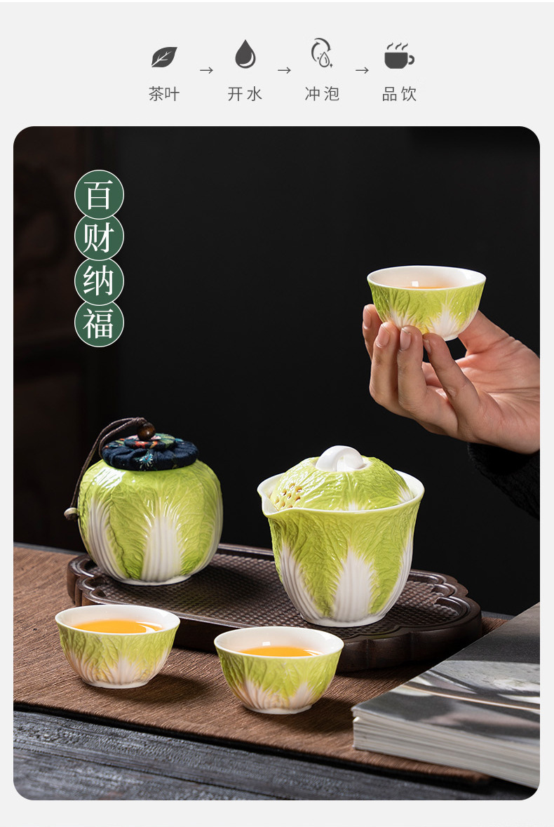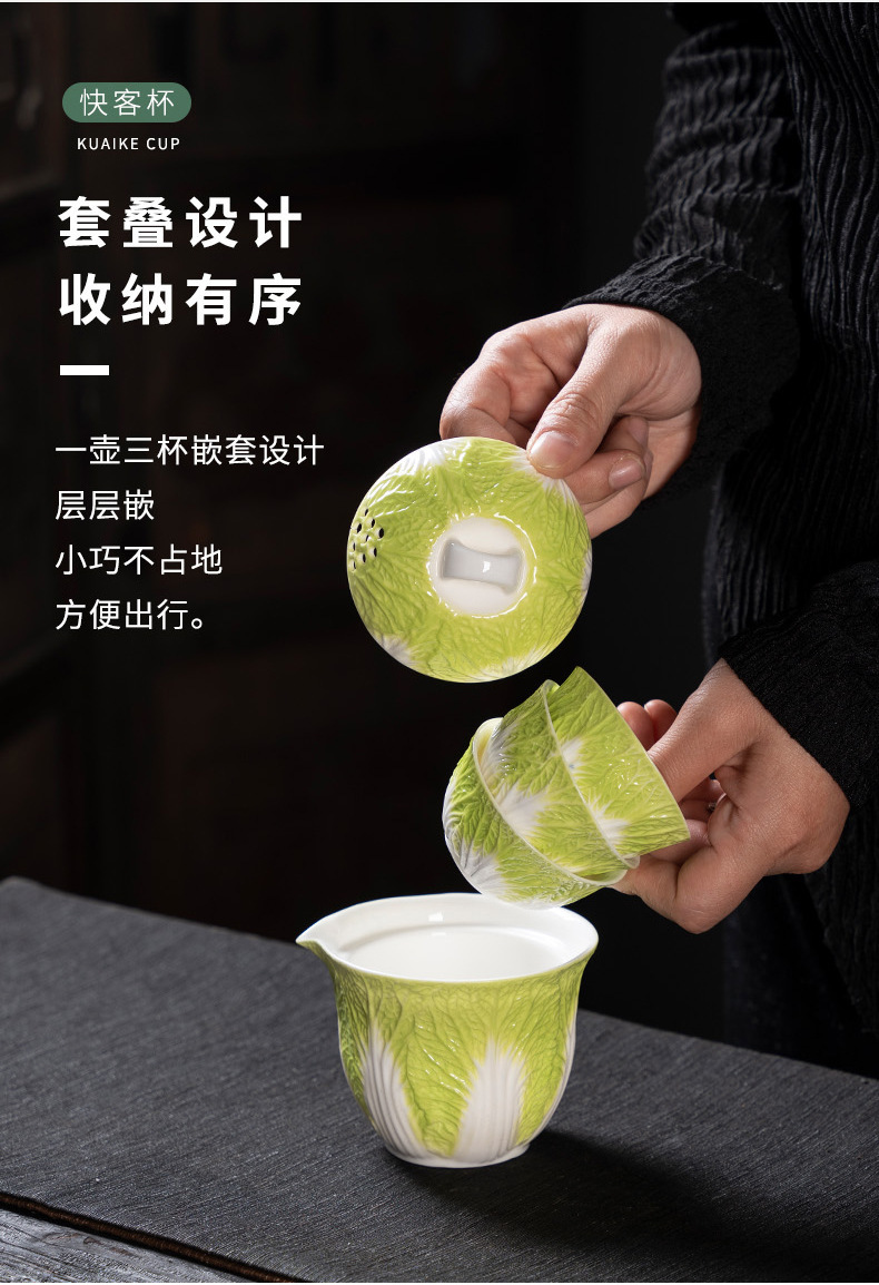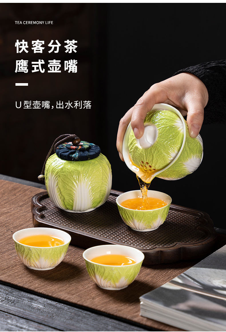 - Bộ trà du lịch bắp cải sáng tạo Baicai Nafu Bộ ba cốc gốm sứ cốc khách nhanh ngoài trời sáng tạo xách tay