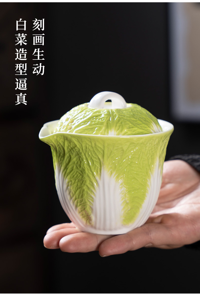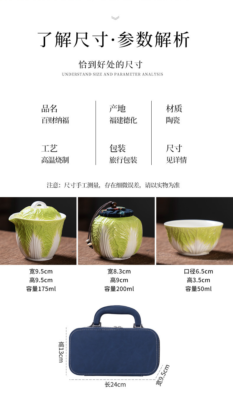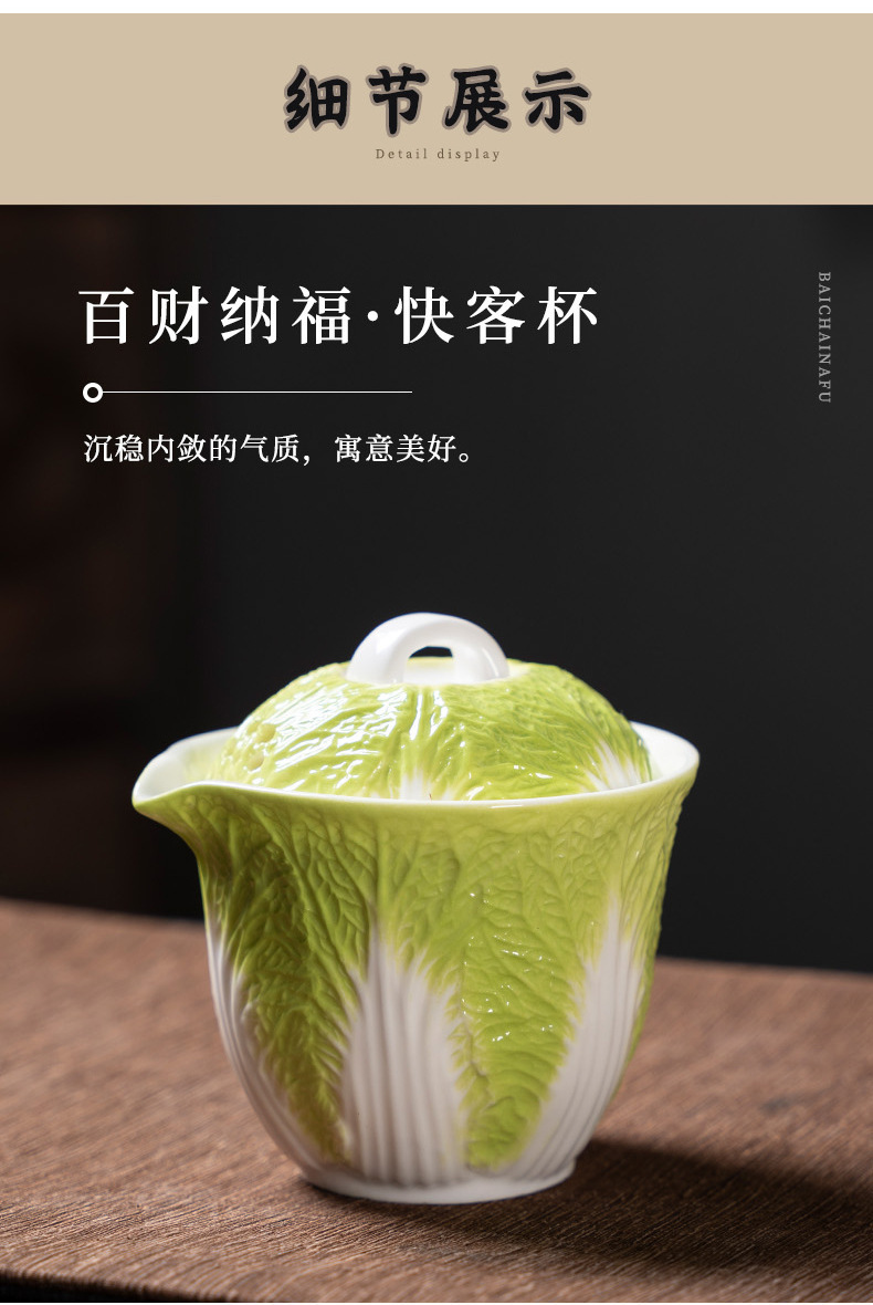 - Bộ trà du lịch bắp cải sáng tạo Baicai Nafu Bộ ba cốc gốm sứ cốc khách nhanh ngoài trời sáng tạo xách tay