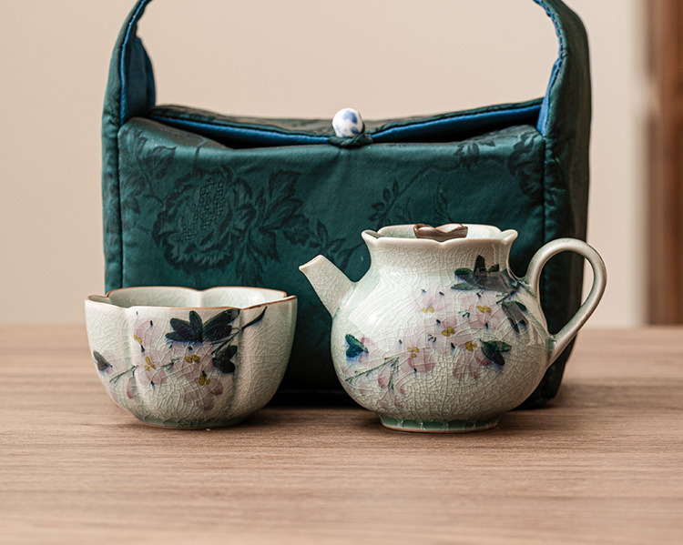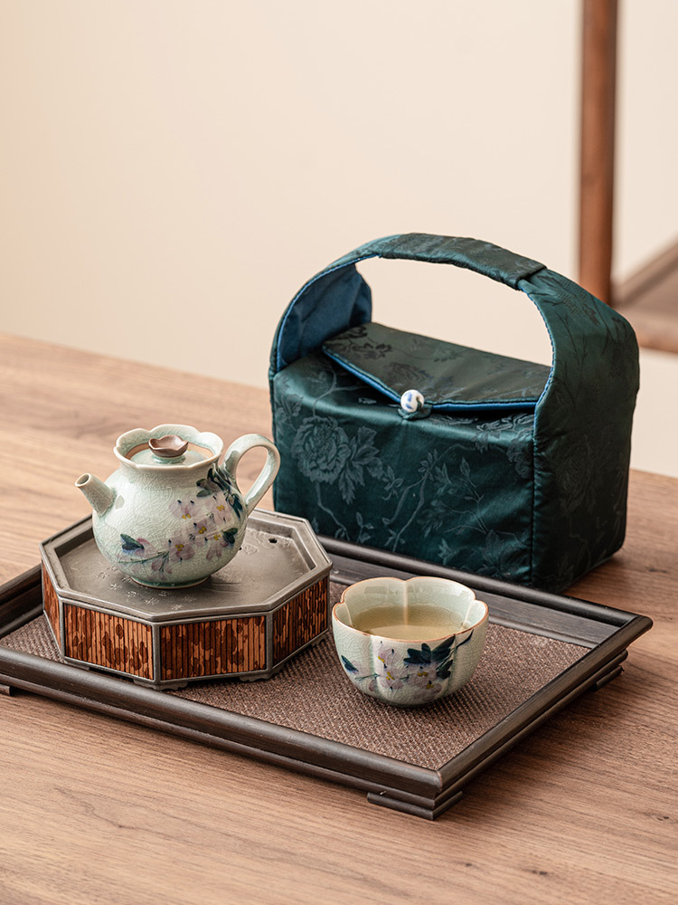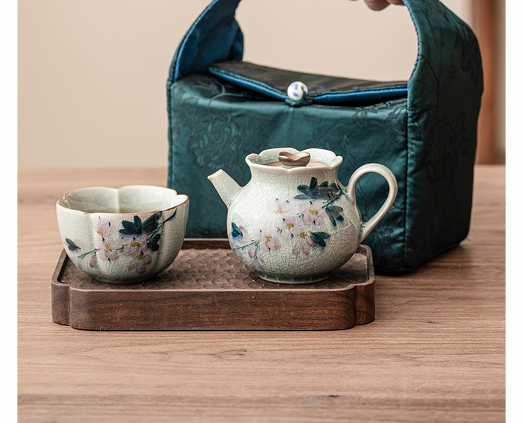 Bộ trà du lịch cầm tay hoa mộc lan vẽ tay bằng gốm sứ Kung Fu một bình một cốc Bộ dụng cụ uống trà ngoài trời